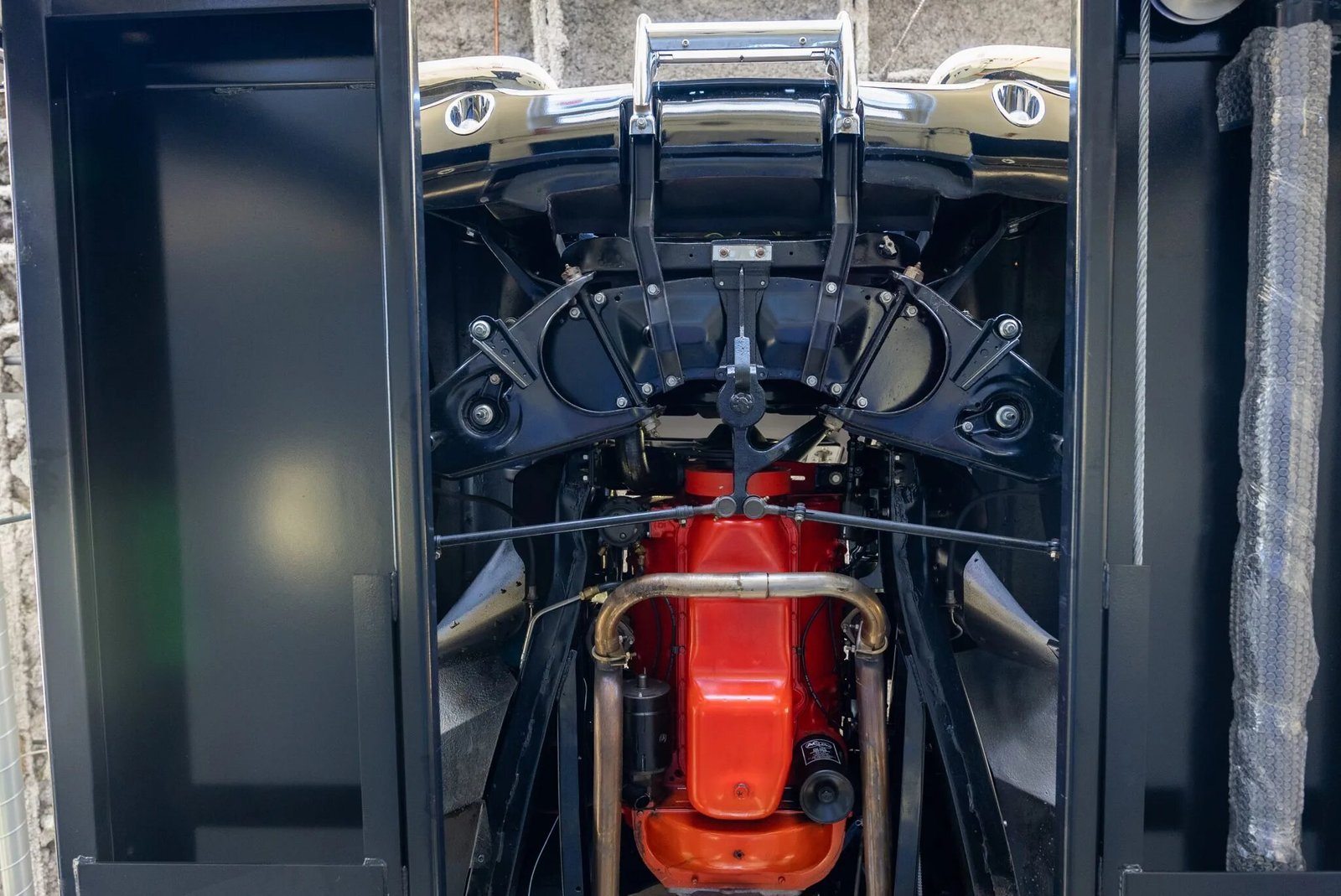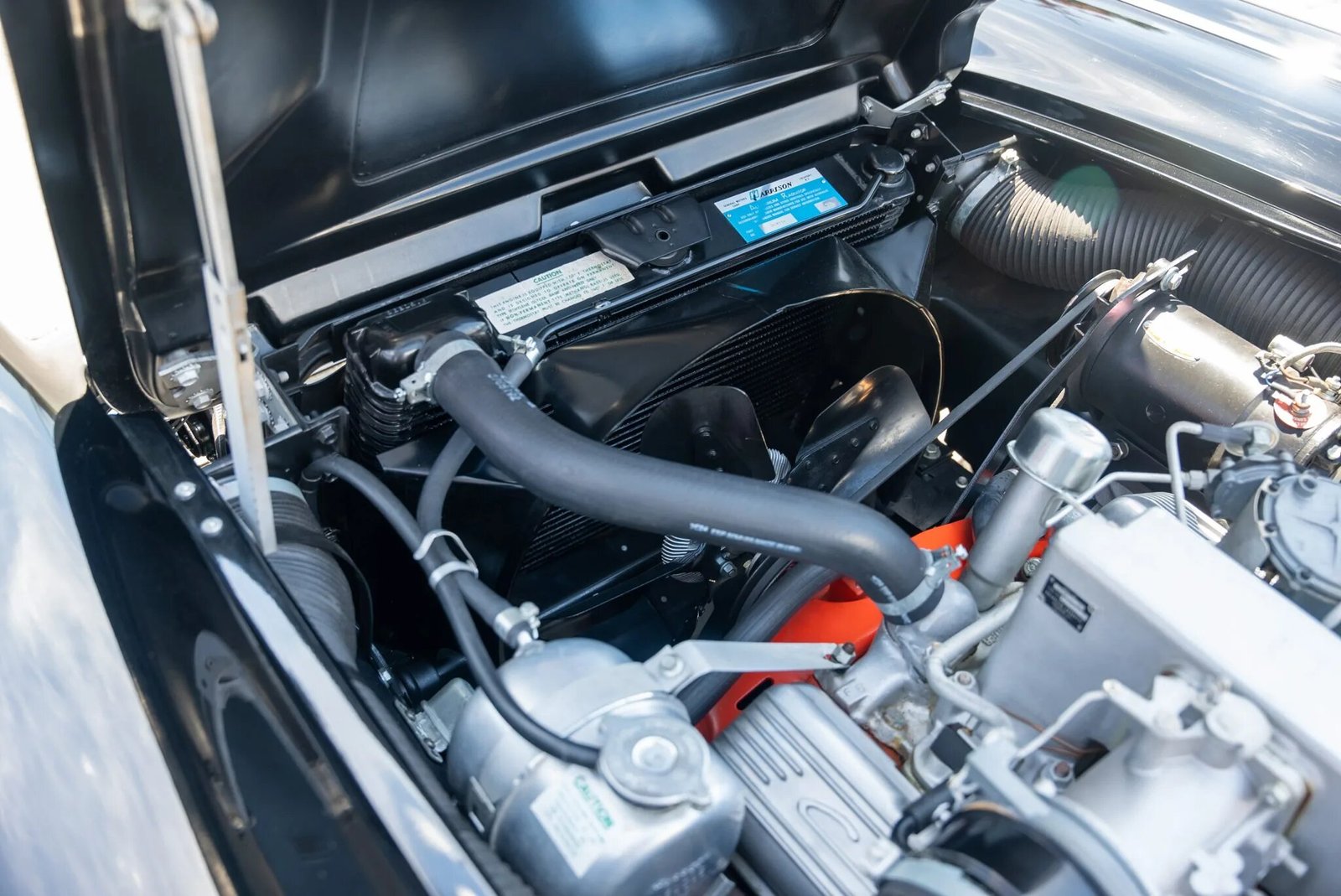 This example is equipped with a Harrison aluminum radiator and sends power is sent to the rear wheels through a four-speed manual transmission and a Positraction rear end.