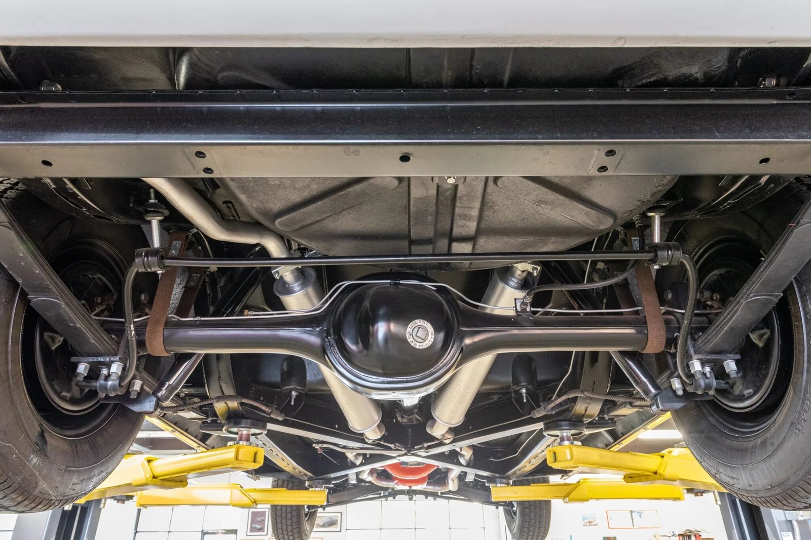 The 15” steel wheels feature polished covers with faux knock-off spinners and are mounted with American Classic whitewall tires sized 205/75.