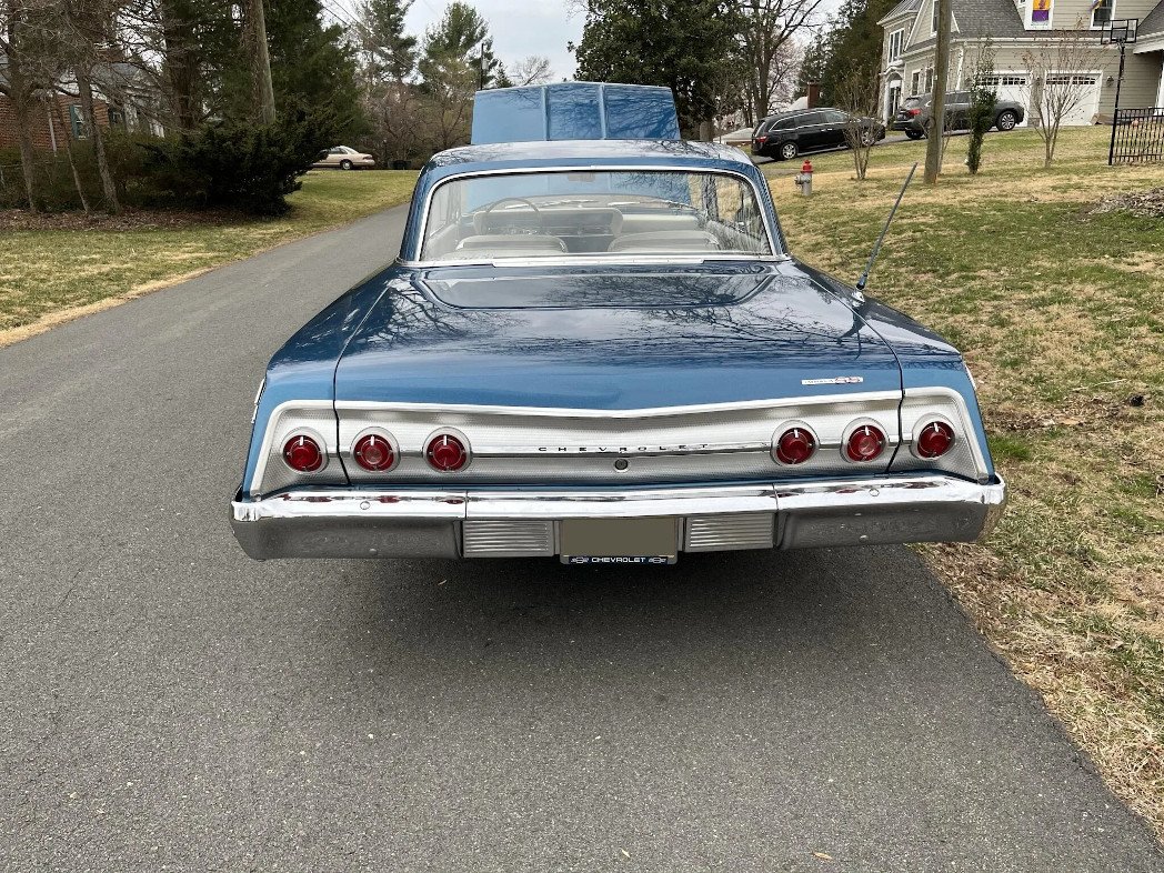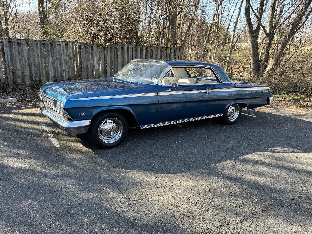 Equipment includes chrome bumpers, quad headlamps, turned metal body accents, a rear antenna, and Impala SS badges.