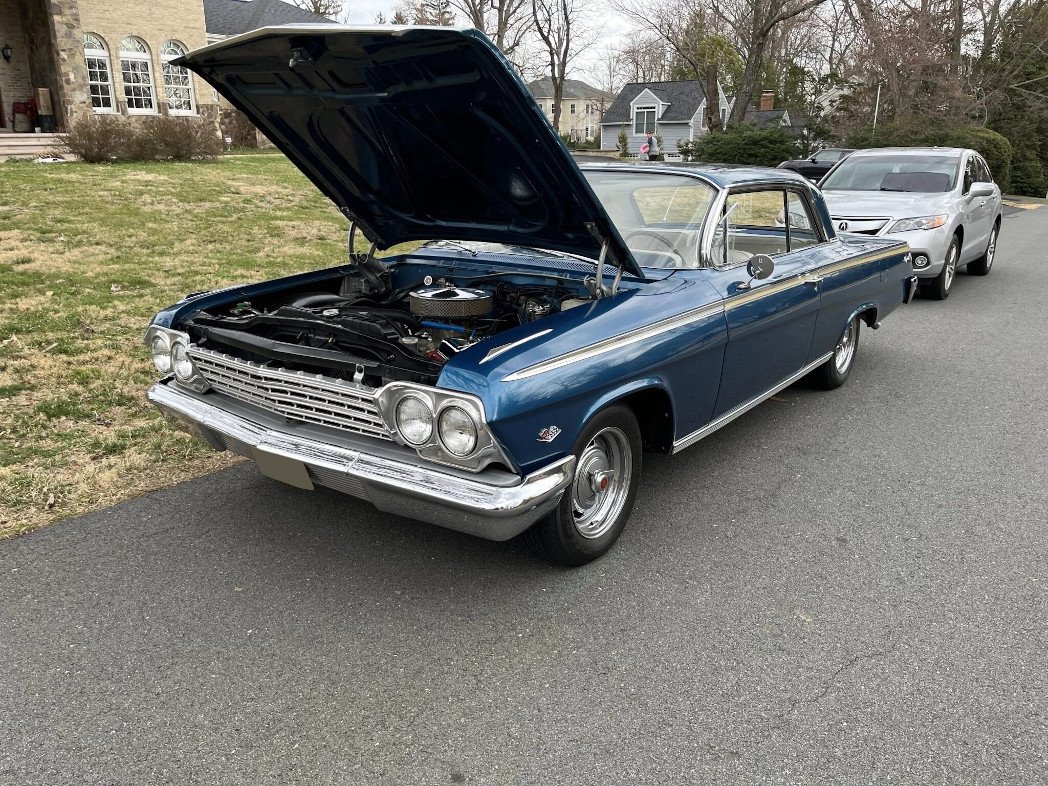 Decoding the Fisher cowl tag reveals the following production information: 4A – Produced during the first week of April, STYLE 62-1847 – 1962 Impala two-door Sport Coupe V8, BODY SL36923 – St. Louis, Missouri, assembly and body sequence number, TRIM 891 – Gold vinyl upholstery; bucket seats, PAINT 936 – Ermine White exterior finish