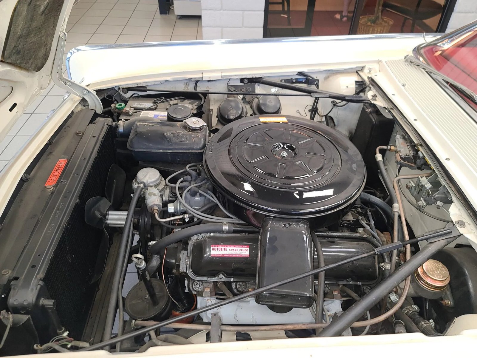 The front-hinged hood opens to reveal a 430ci V8 equipped with a two-barrel carburetor, and factory-rated output was 300 horsepower and 465 lb-ft of torque when new.