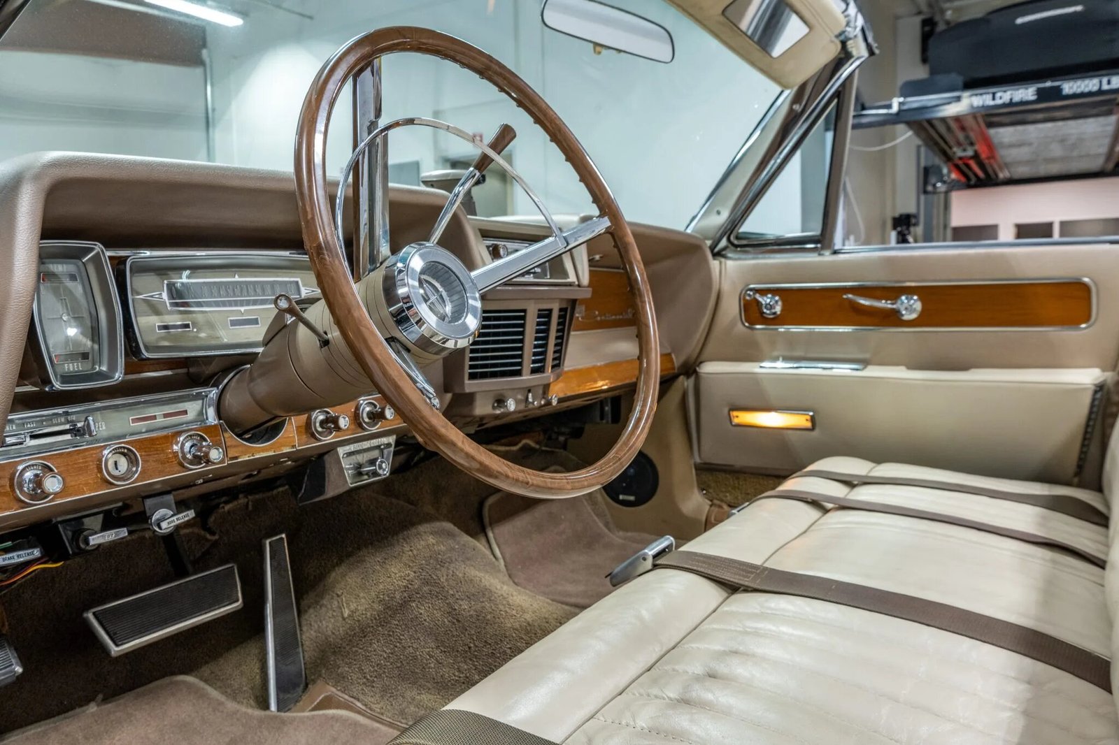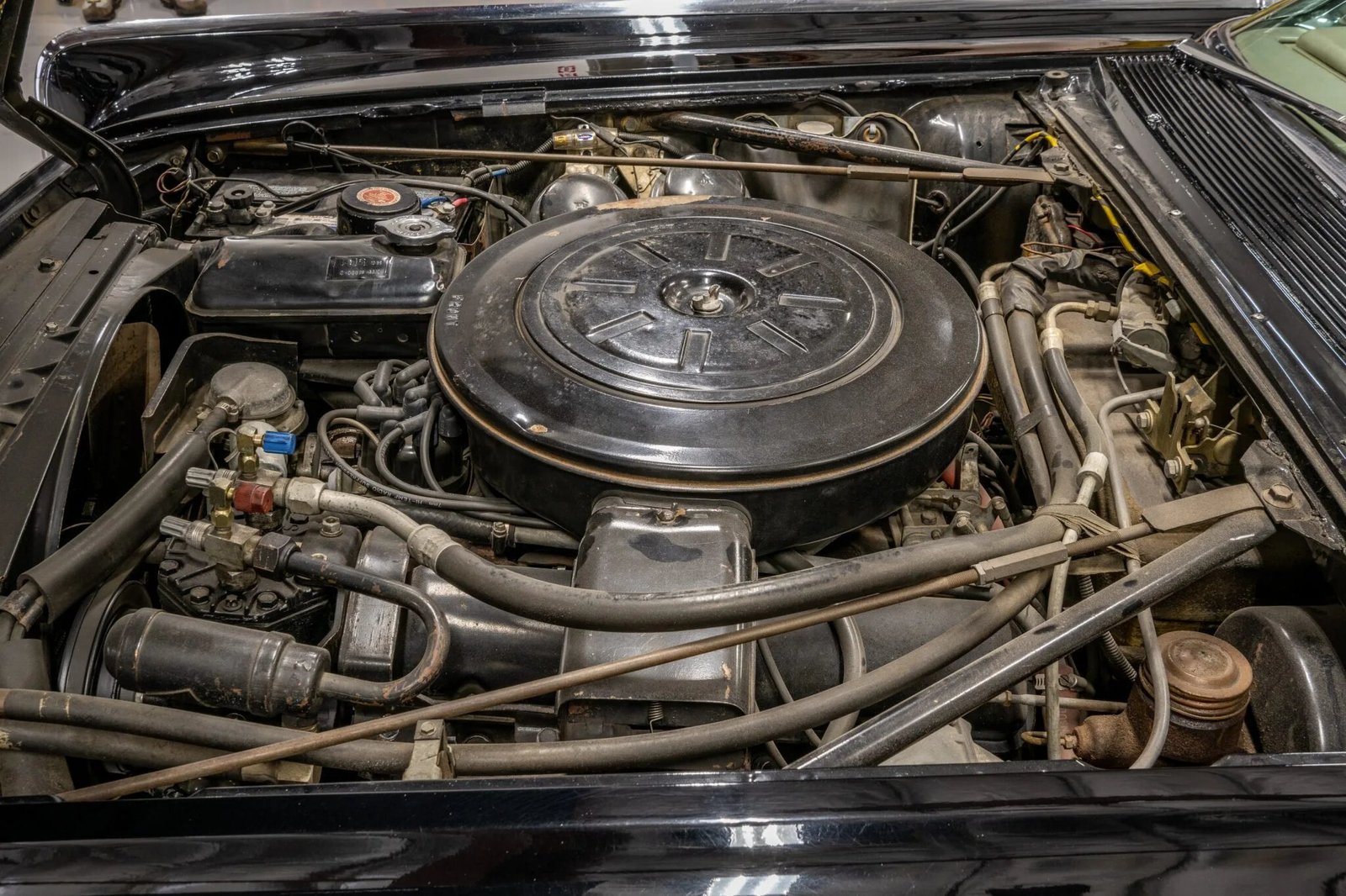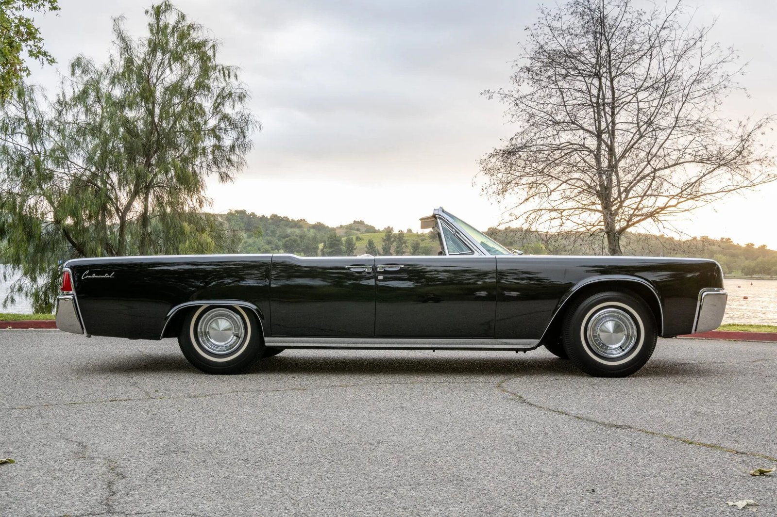 This 1962 Lincoln Continental convertible is finished in Presidential Black over beige leather upholstery and is powered by a 430ci V8 paired to a three-speed automatic transmission.