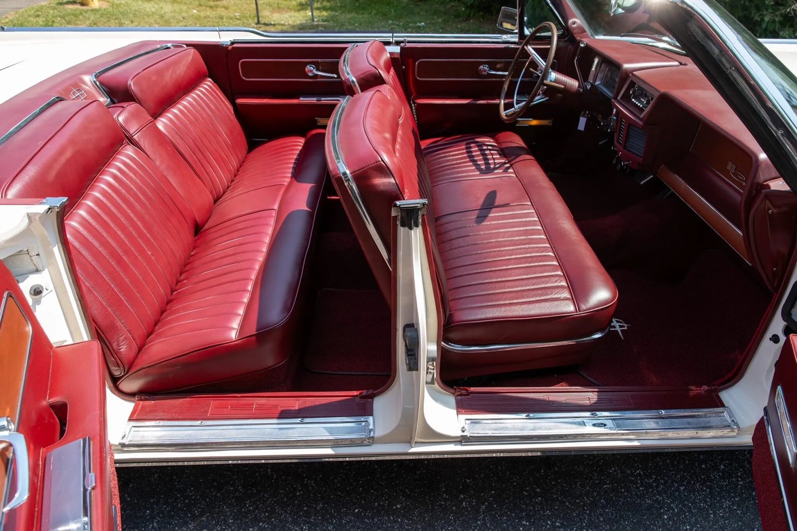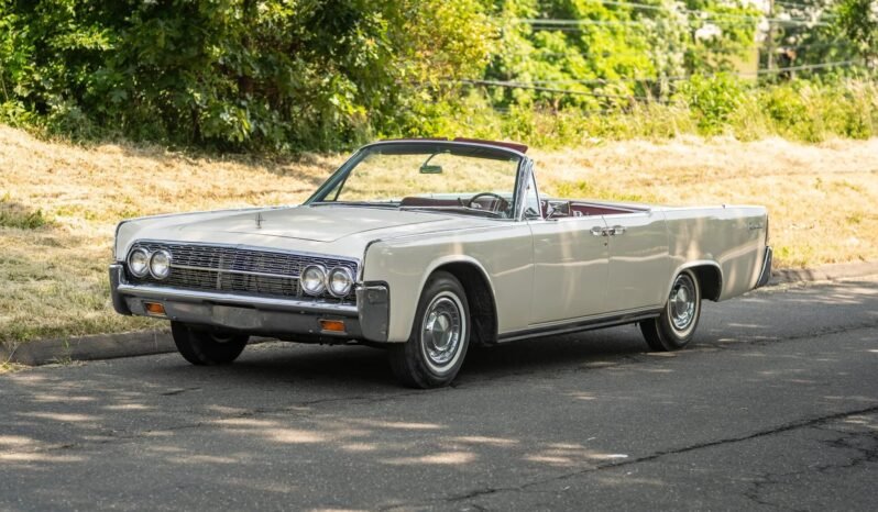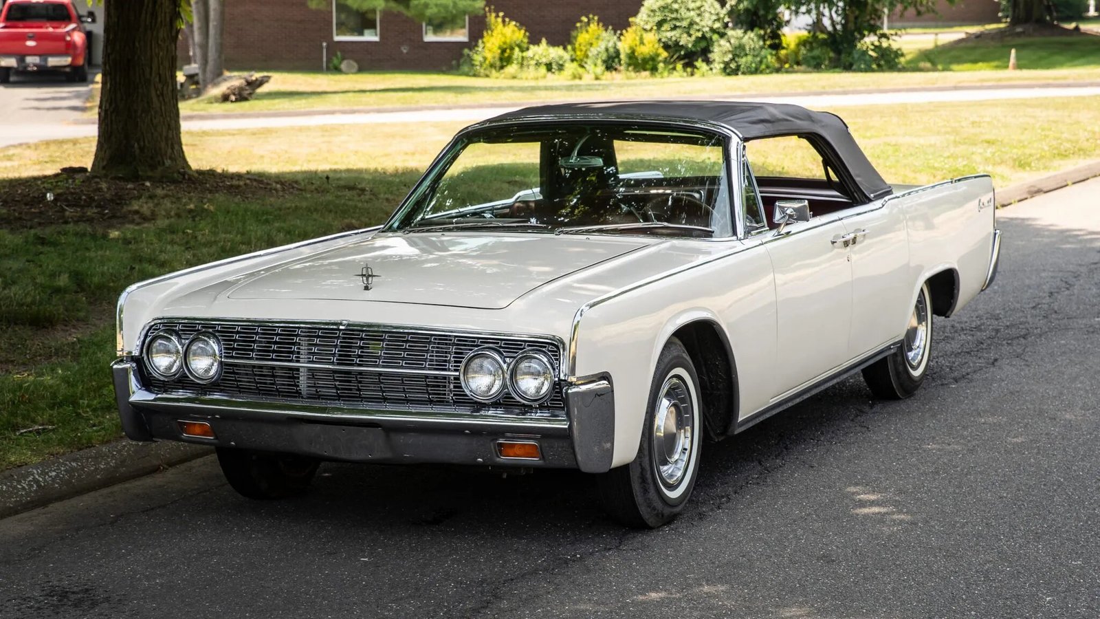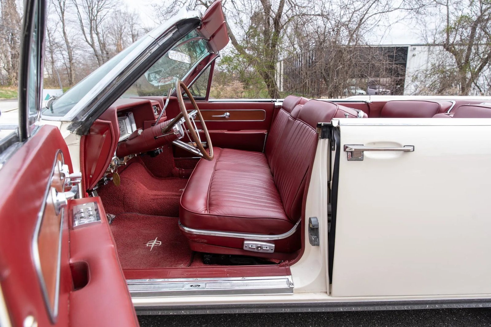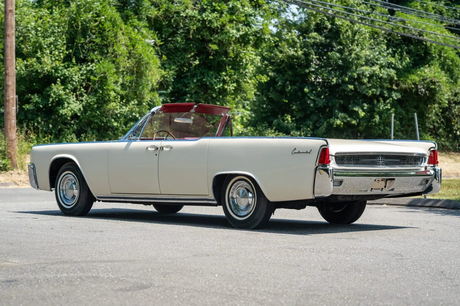 This 1962 Lincoln Continental convertible was restored between 2014 and 2015 with a repaint, a reupholstered interior, and a mechanical overhaul, and following the seller’s acquisition the black soft top and upholstery was replaced. The white-over-red convertible is powered by a 430ci V8 linked with a dual-range three-speed automatic transmission and is equipped with a power-operated top, power steering, power-assisted four-wheel disc brakes, polished wheel covers, a power-adjustable front bench, power windows, an AM radio, and air conditioning.