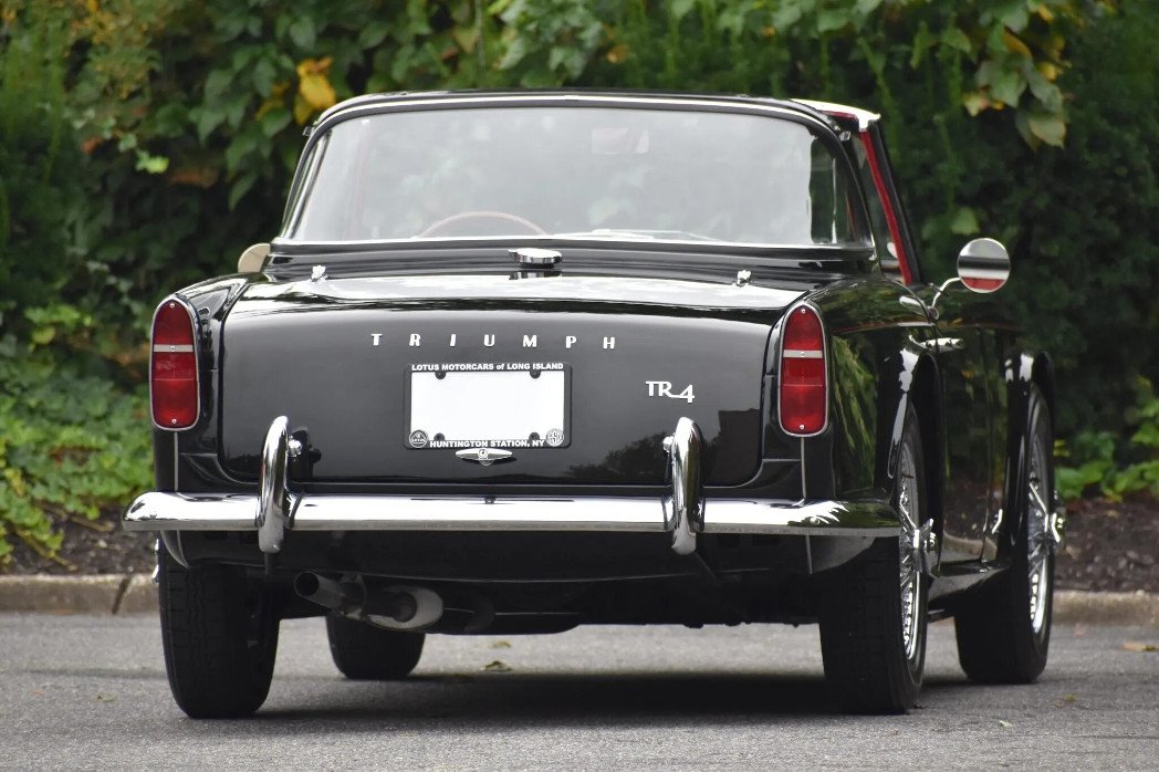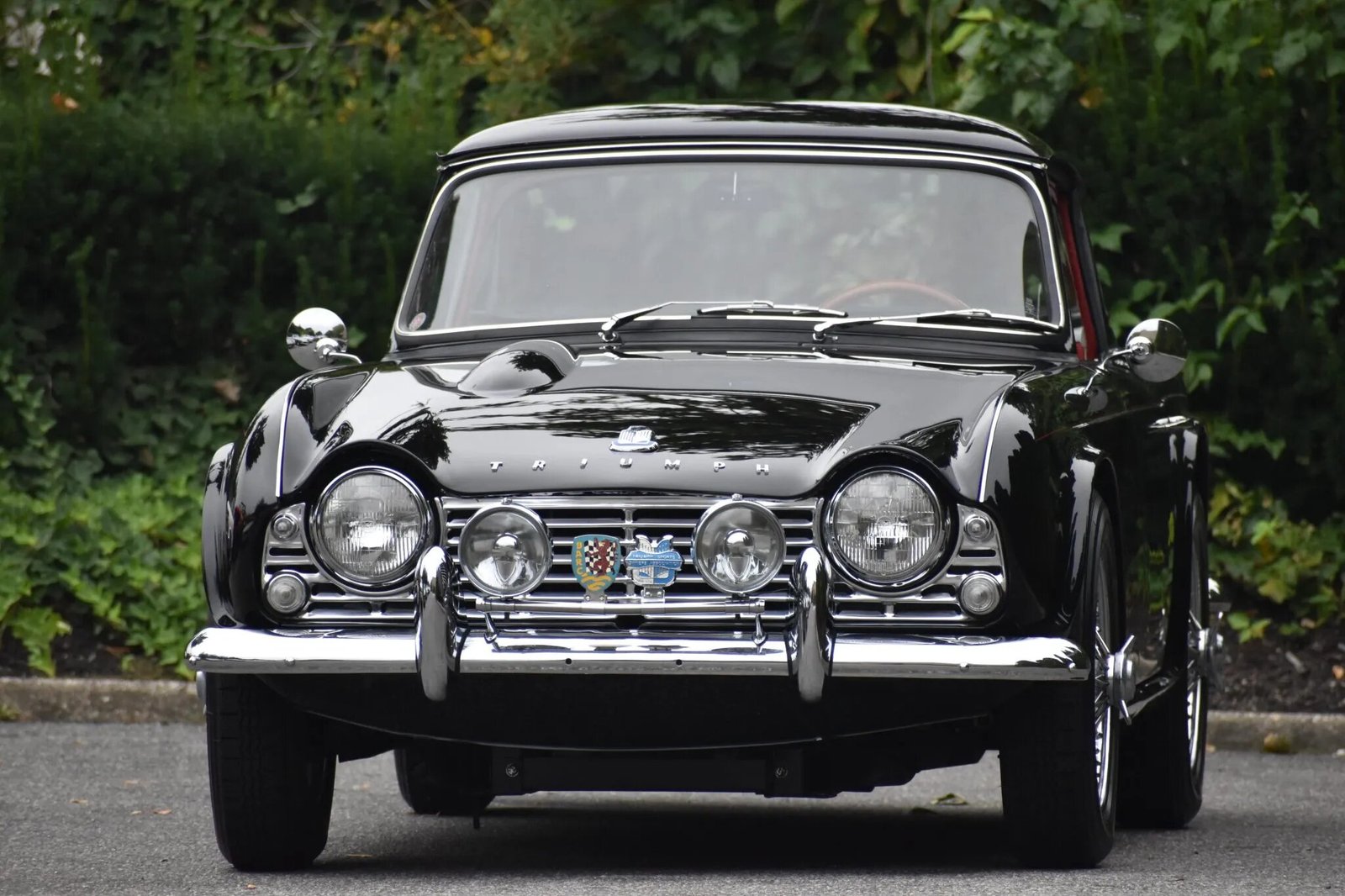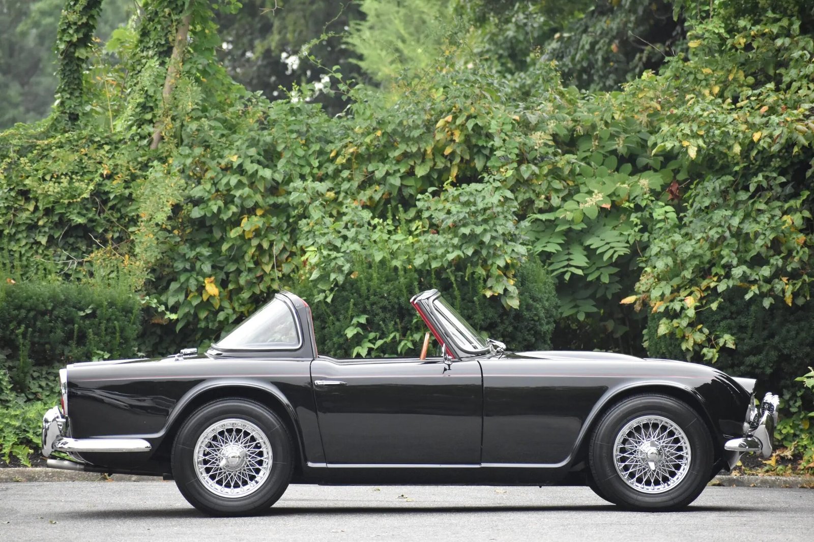 This 1962 Triumph TR4 was completed on June 14, 1962 and delivered new to Standard Triumph Motor Company of Boston, Massachusetts. The car underwent a refurbishment in the mid-1990s and was driven in the 2014 Copperstate 1000 rally. It is powered by a replacement 2,138cc inline-four paired with a four-speed manual transmission and is finished in black over red leather upholstery. Equipment includes a body-color Surrey top with a removable roof panel, dual SU carburetors, front driving lamps, a Nardi steering wheel, and 15” wire wheels.