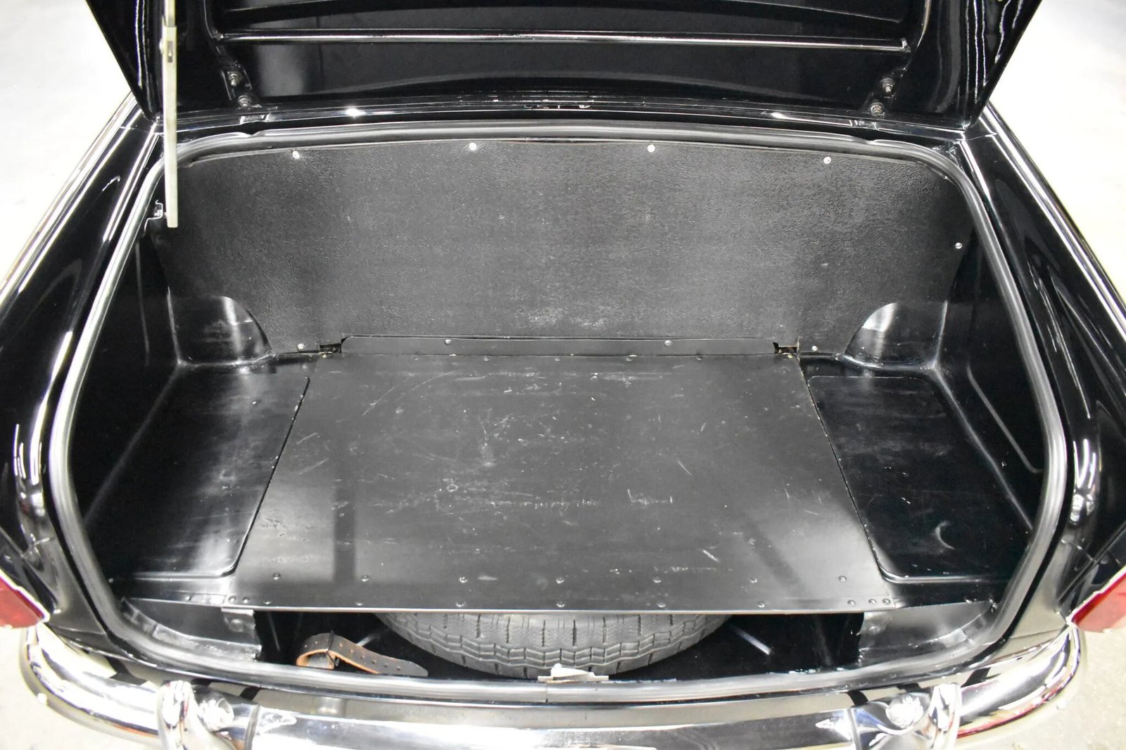Finished from the factory in Black, the car was repainted during the refurbishment and features red pinstripes along with a body-color Surrey top with a removable roof panel. Driving lamps are affixed to a front badge bar.