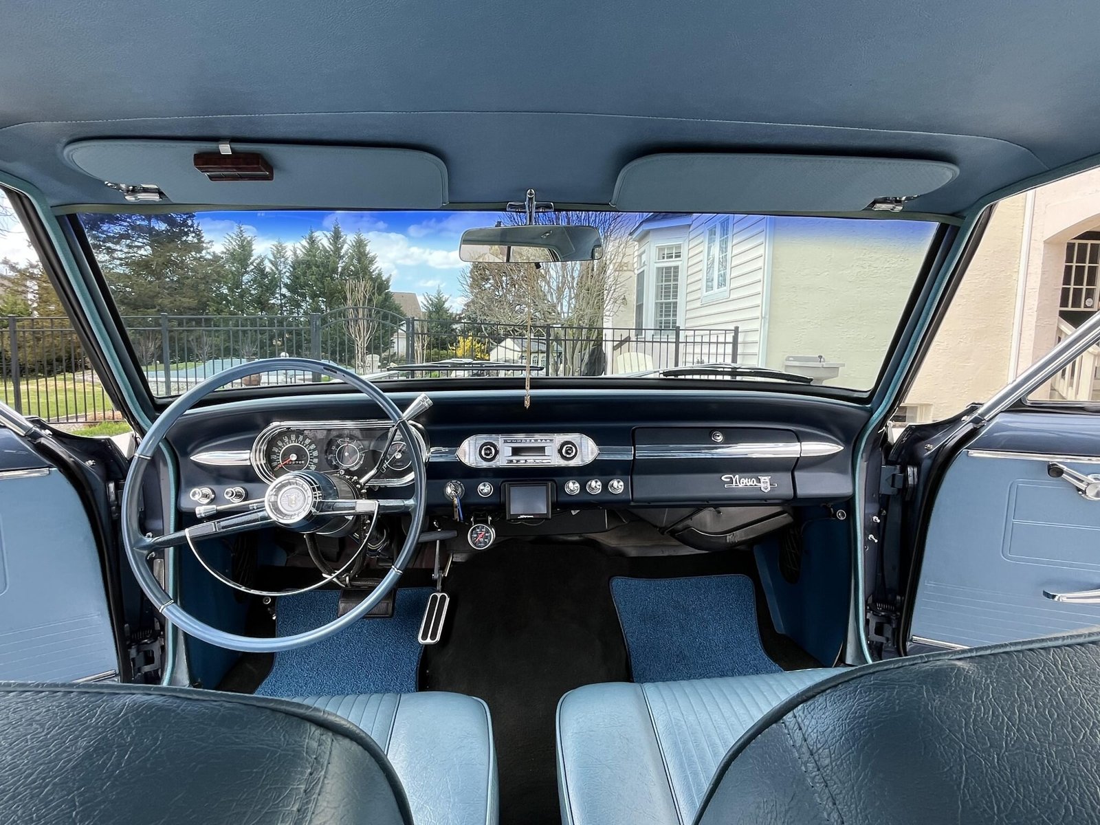 This 1963 Chevrolet Chevy II Nova sport coupe is finished in blue over blue vinyl upholstery and powered by a 350ci V8 equipped with Holley Sniper electronic fuel injection and mated to a Turbo-Hydramatic three-speed automatic transmission and a Positraction differential. Additional equipment includes a cowl induction hood, TCI front subframe with coilovers, CalTrac split mono-leaf rear suspension, Wilwood four-wheel disc brakes, power steering, a digital stereo, a Flowmaster exhaust system, and Billet Specialties wheels.