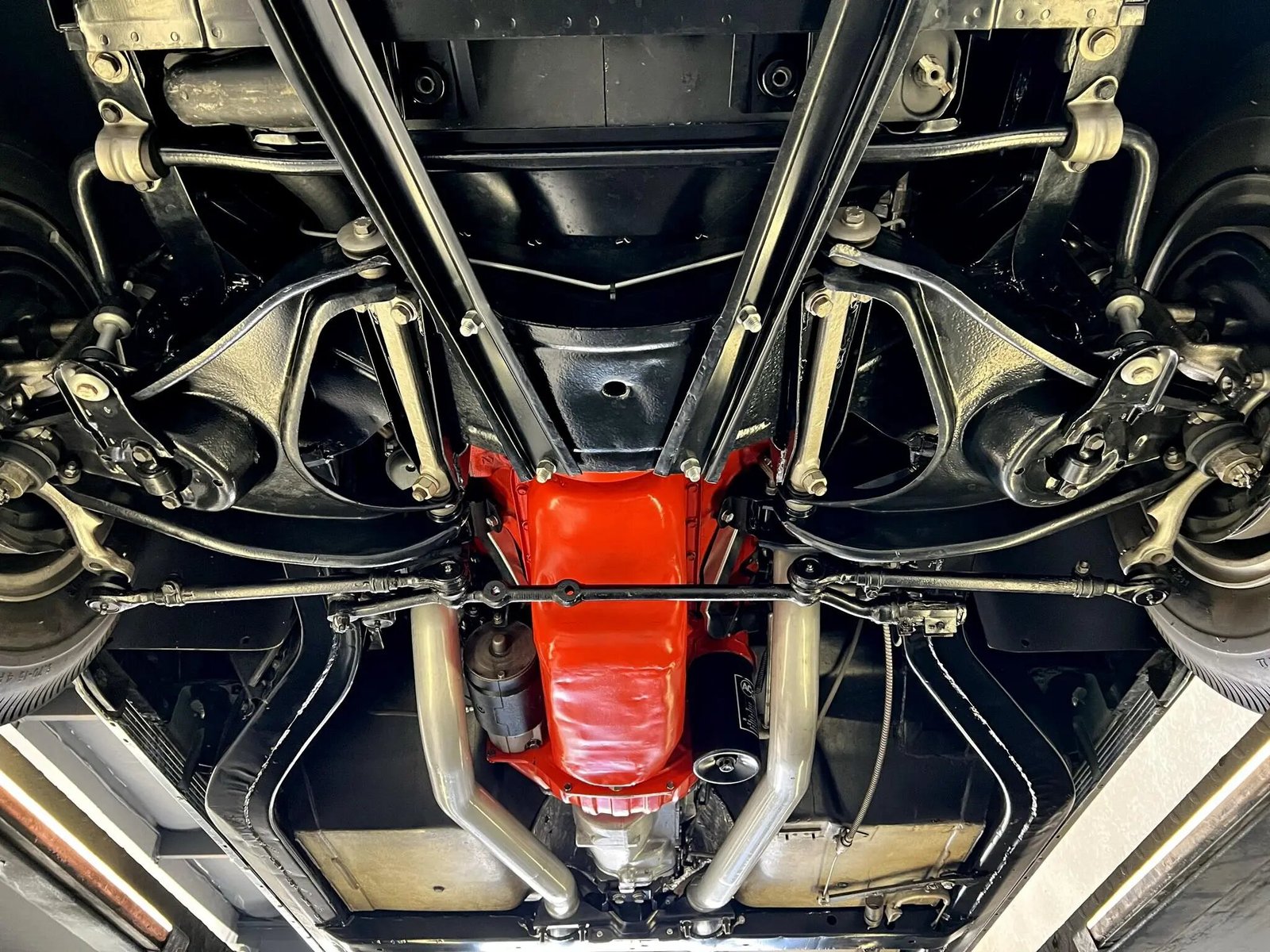 The 327ci L84 V8 featured Rochester mechanical fuel injection and a high-lift camshaft to produce a factory-rated 360 horsepower. The engine stamping is shown above, and the RF suffix is consistent with a 360-horsepower, 327ci V8 for use with a manual transmission. Power is sent to the rear wheels through a four-speed manual transmission and an optional Positraction differential.