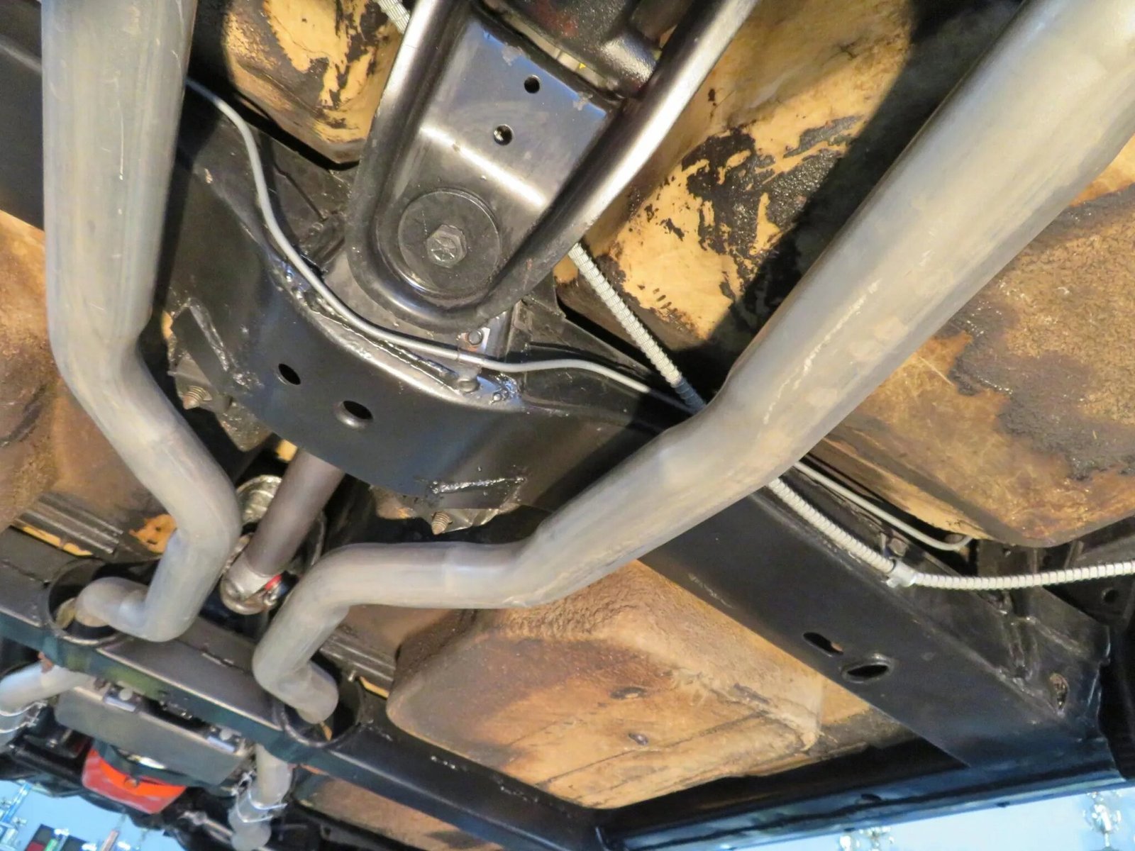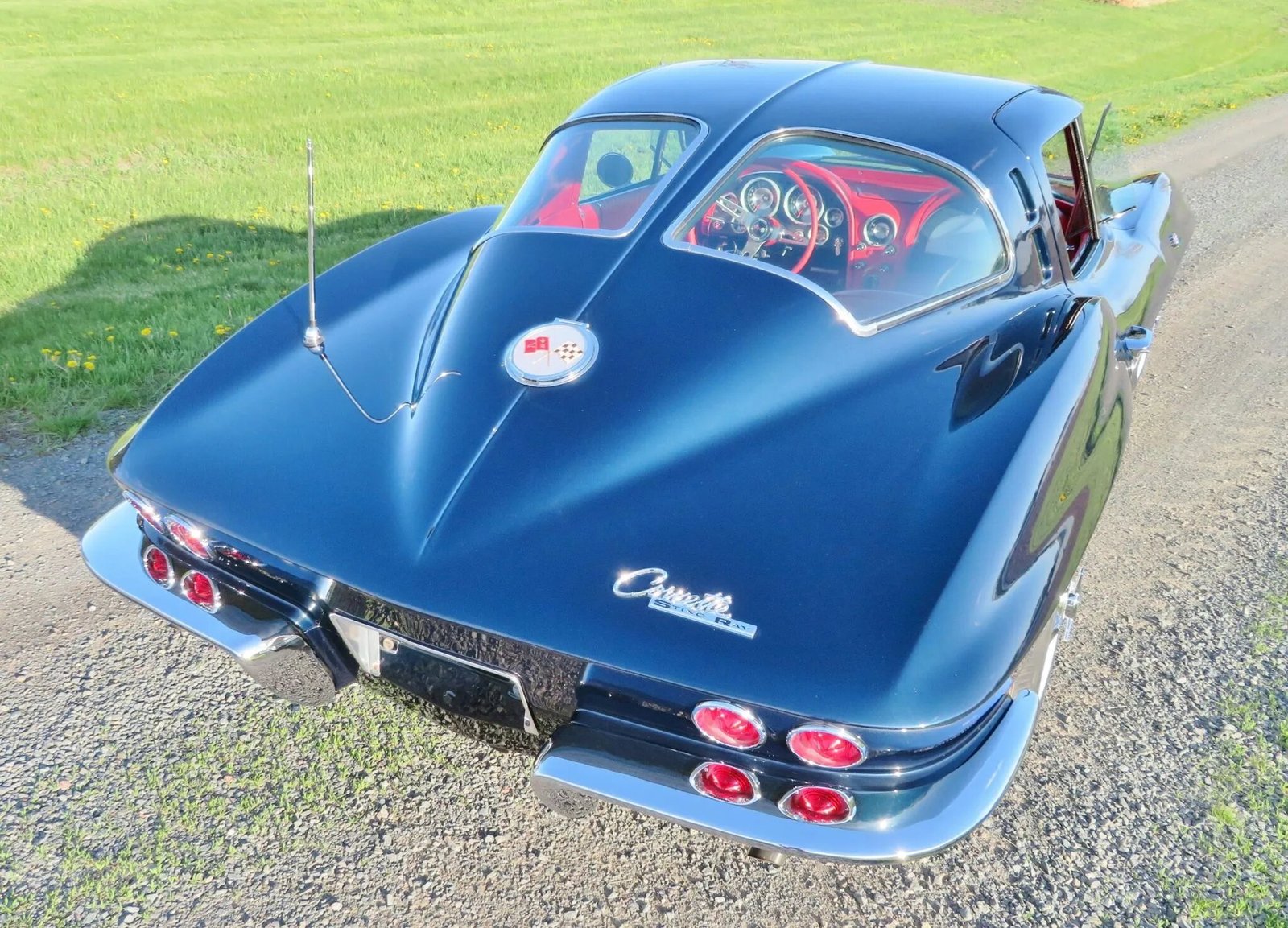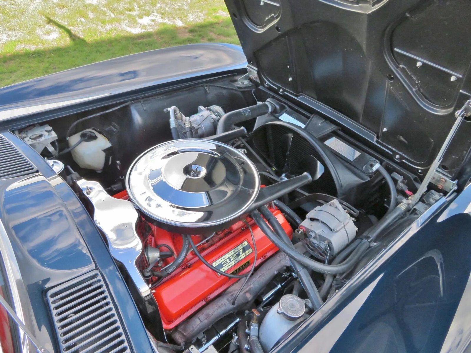 The fiberglass body was removed from the frame and repainted in the factory Daytona Blue in 2007. The frame was also blasted and repainted. Features include flip-up headlamps, fender vents, quad tail lamps, chrome bumperettes, and dual exhaust tips that exit through the rear valance.