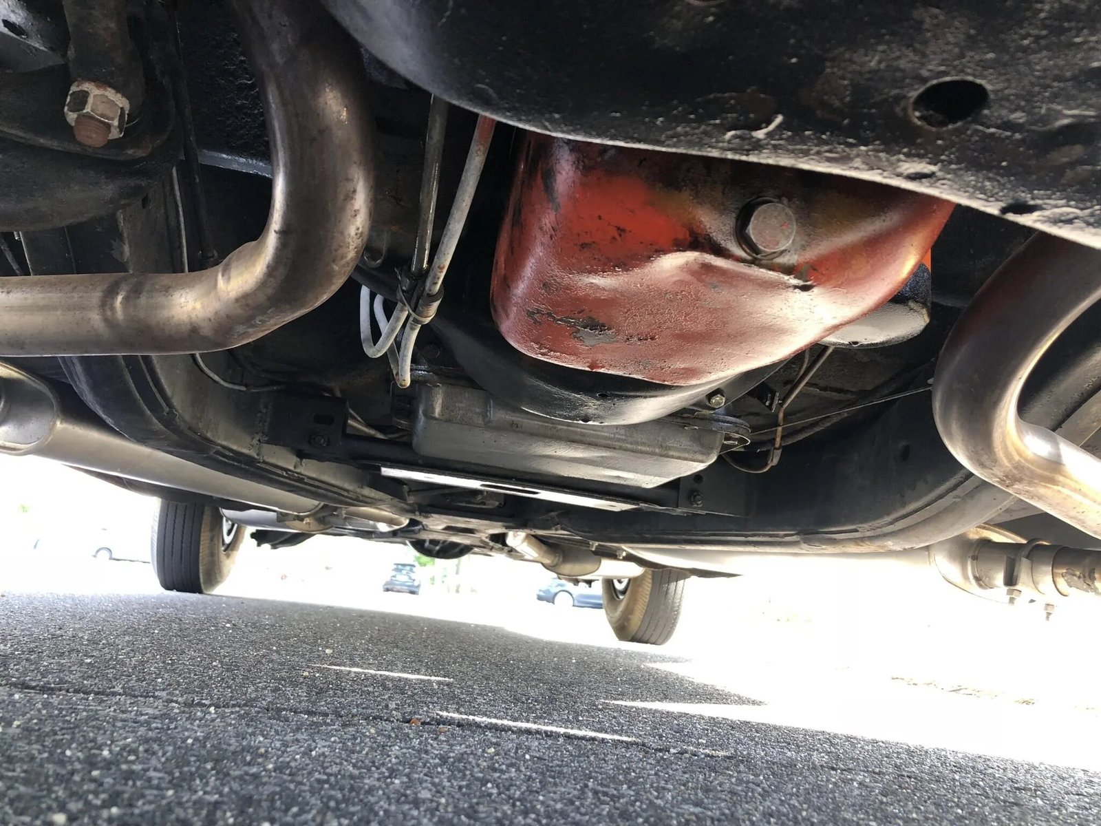 Steel 14″ wheels wear SS-branded covers and are mounted with BFGoodrich Silvertown whitewall tires. The car is equipped with power steering and power-assisted drum brakes at all four corners.