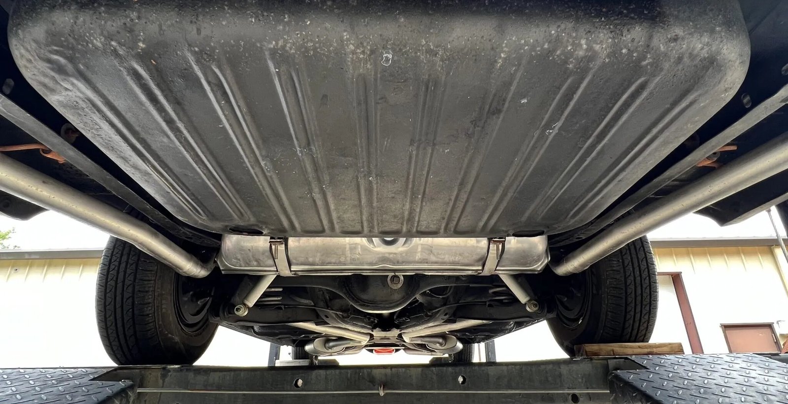 An aftermarket dual exhaust system has been installed.