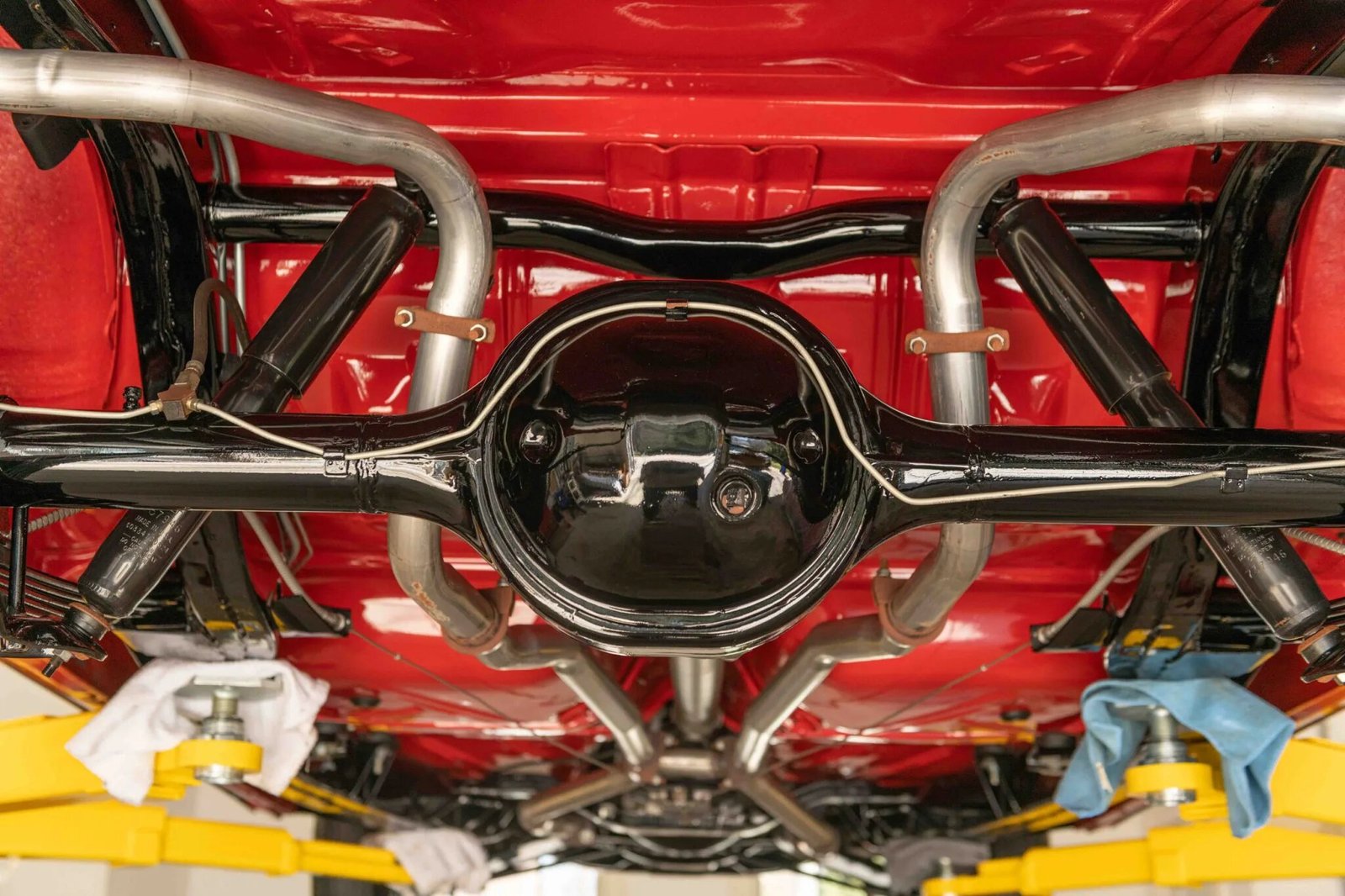 The body was finished from the factory in Rangoon Red (J) and was mounted to a rotisserie during the 2000s refurbishment, receiving a repaint in its current shade of red.