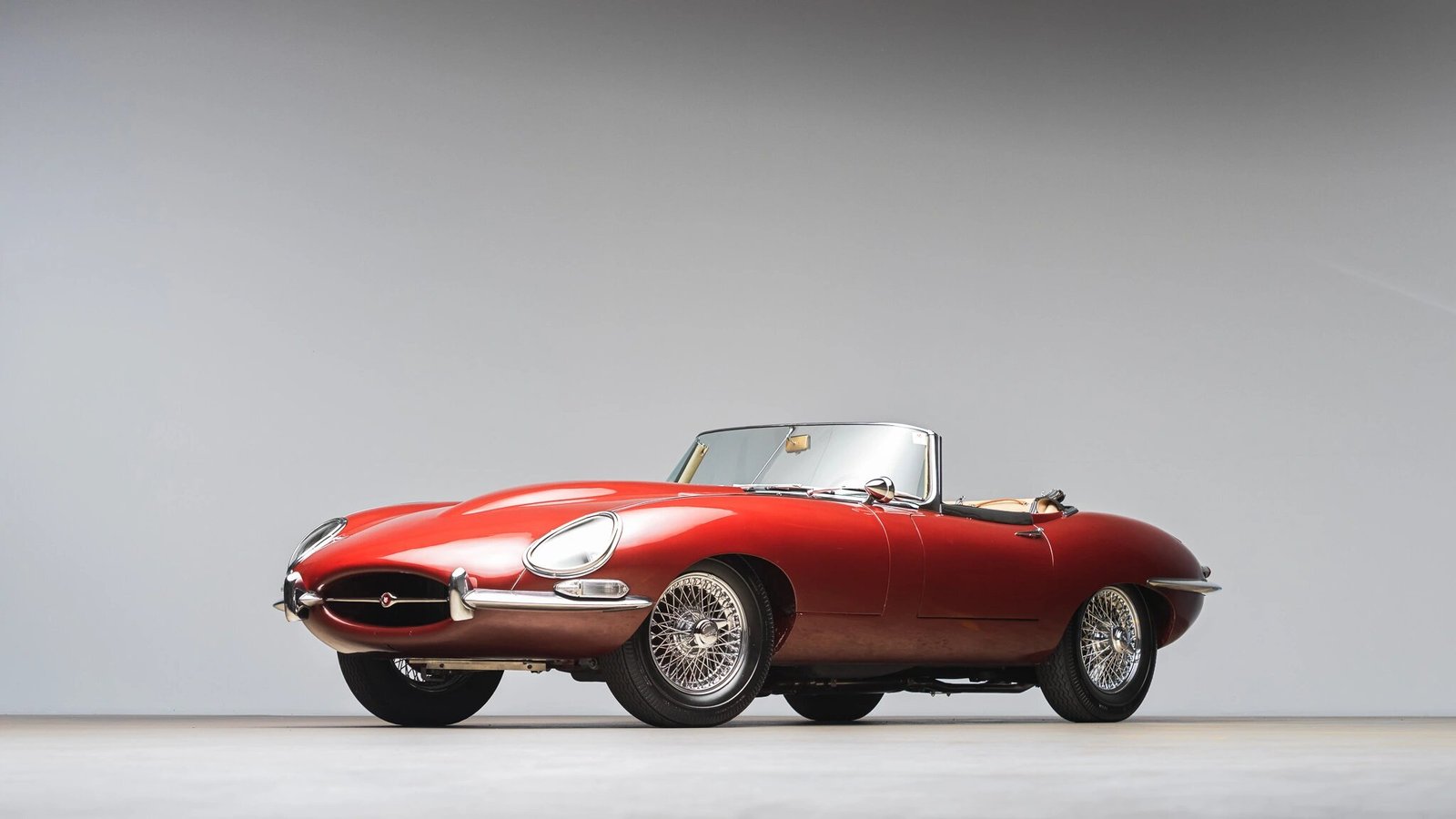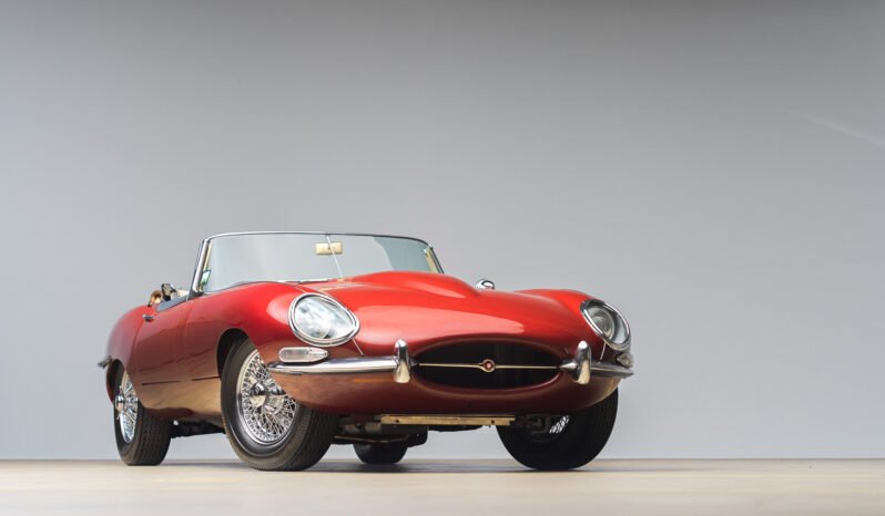 This 1963 Jaguar XKE is a Series I roadster was built on September 11, 1962. The car is finished in Opalescent Maroon over a beige leather interior, and power is provided by a numbers-matching 3.8-liter inline-six paired with a four-speed manual transmission. Equipment includes a Sand soft top, 15” chrome wire wheels, triple SU carburetors, a stainless exhaust system, bucket seats, and a Motorola radio.
