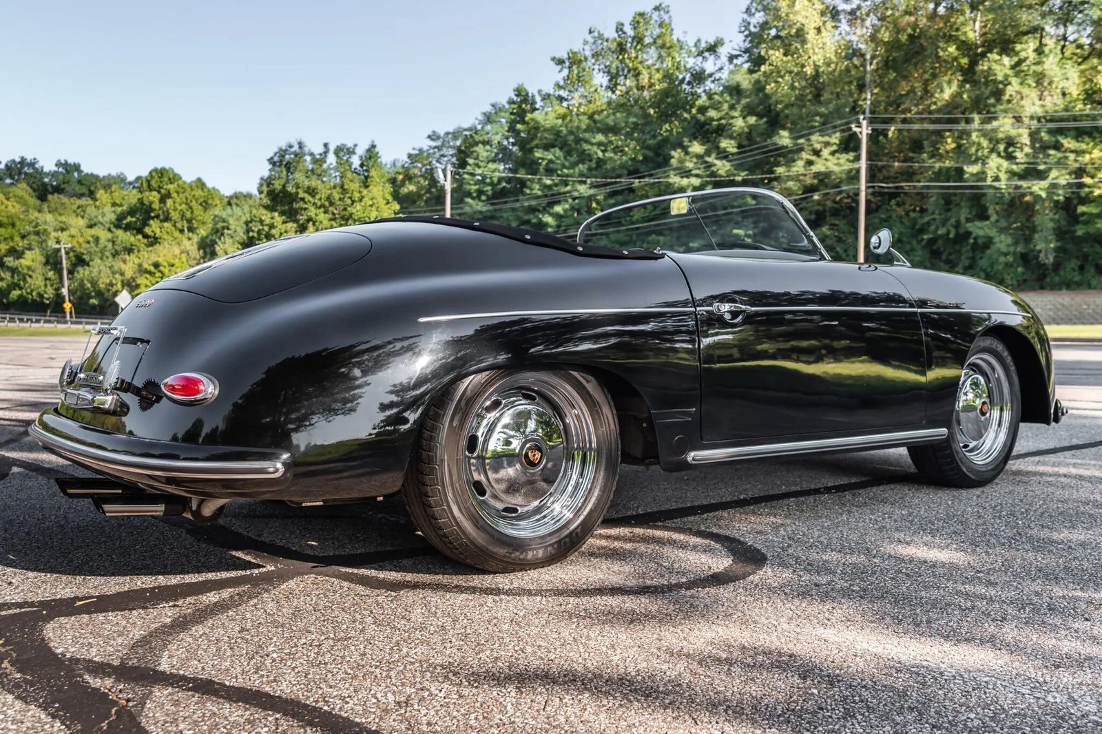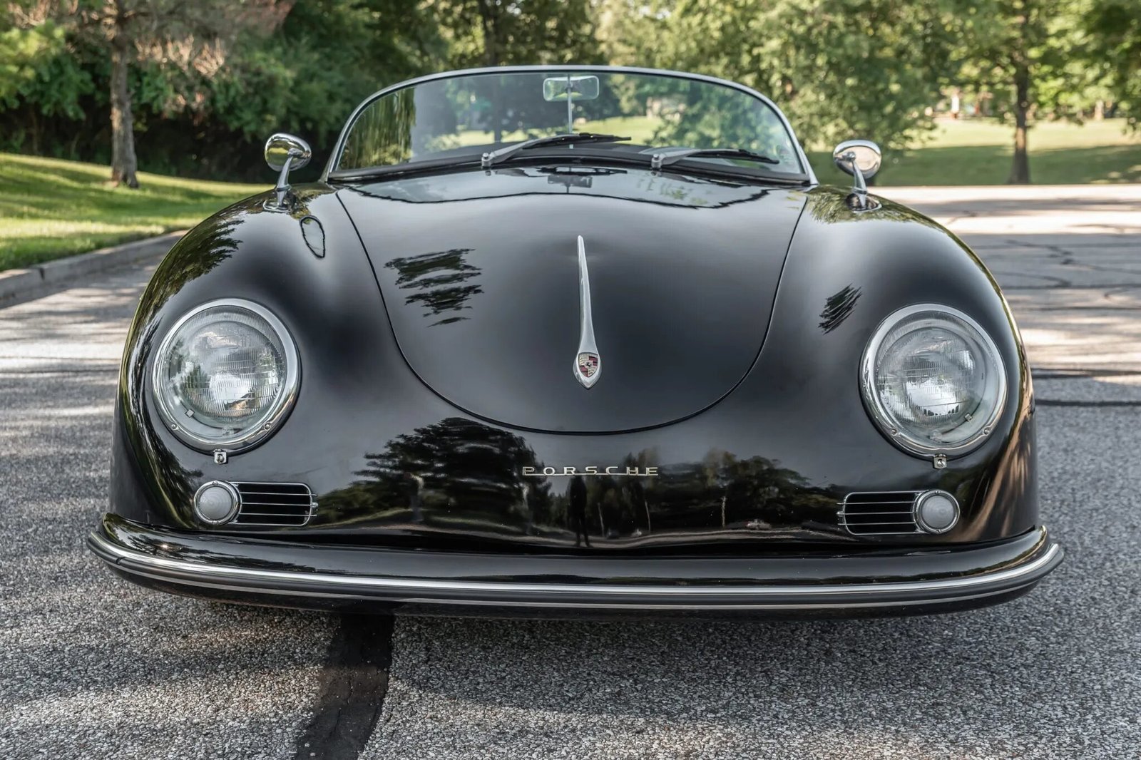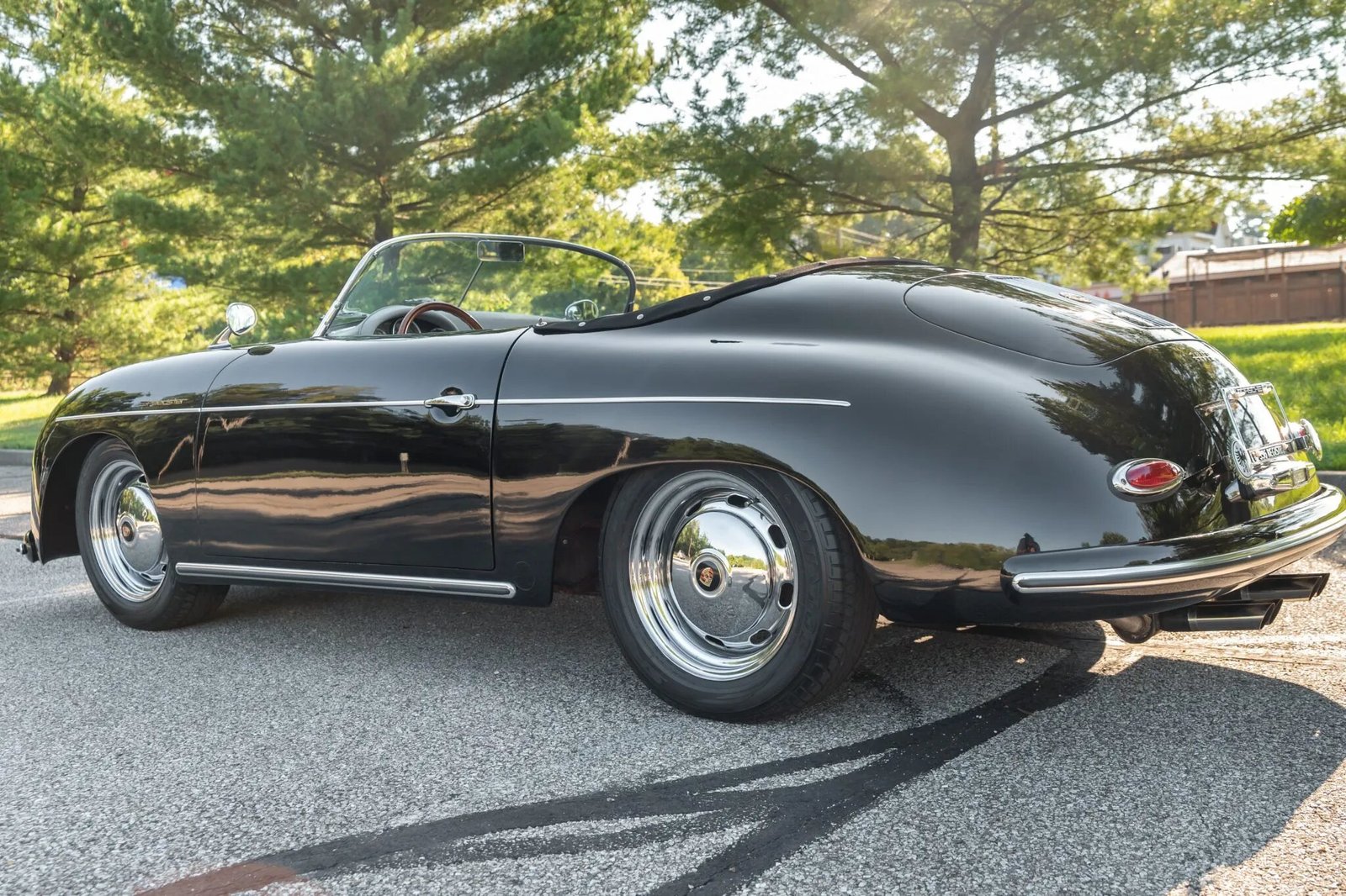 This Porsche 356 Speedster replica was built with a fiberglass body mounted over a modified Volkswagen Beetle chassis by Vintage Speedsters. Powered by a 1.6-liter flat-four mated to a four-speed manual transaxle, it is finished in black over gray upholstery, and it is equipped with dual Weber carburetors, 15″ steel wheels, front disc brakes, a black soft top, a Nardi steering wheel, sisal floor mats, and Kenwood speakers. Service in preparation for the sale included replacing the carburetors, pushrod tubes and seals, rear main seal, clutch assembly, fuel filter, spark plugs, ignition wires, and rear axle seals.