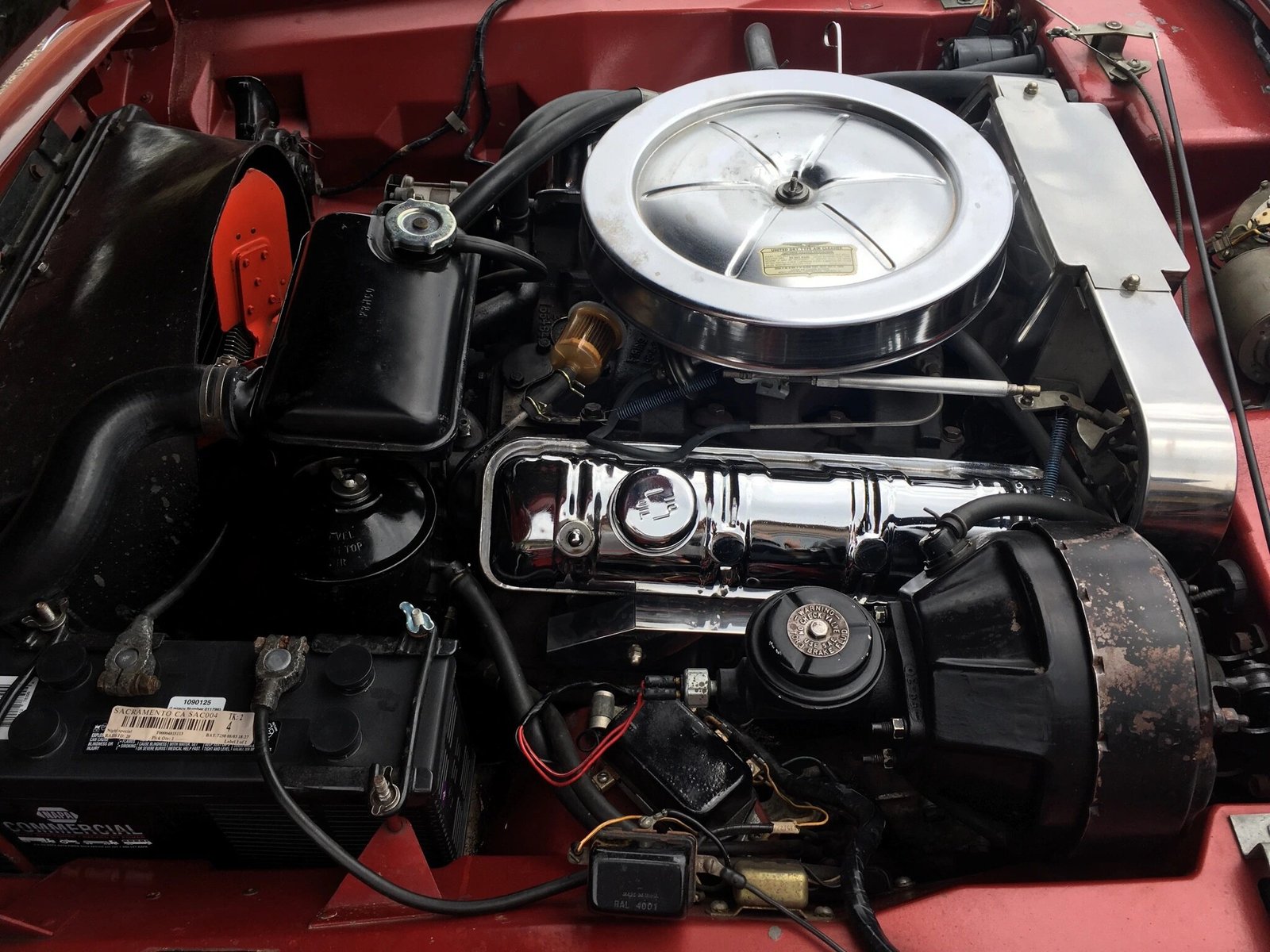The R1 289ci Jet Thrust V8 featured 10.25:1 compression, a forged crankshaft and connecting rods, and a Carter 4-barrel carburetor for a rating of 240 horsepower when new.