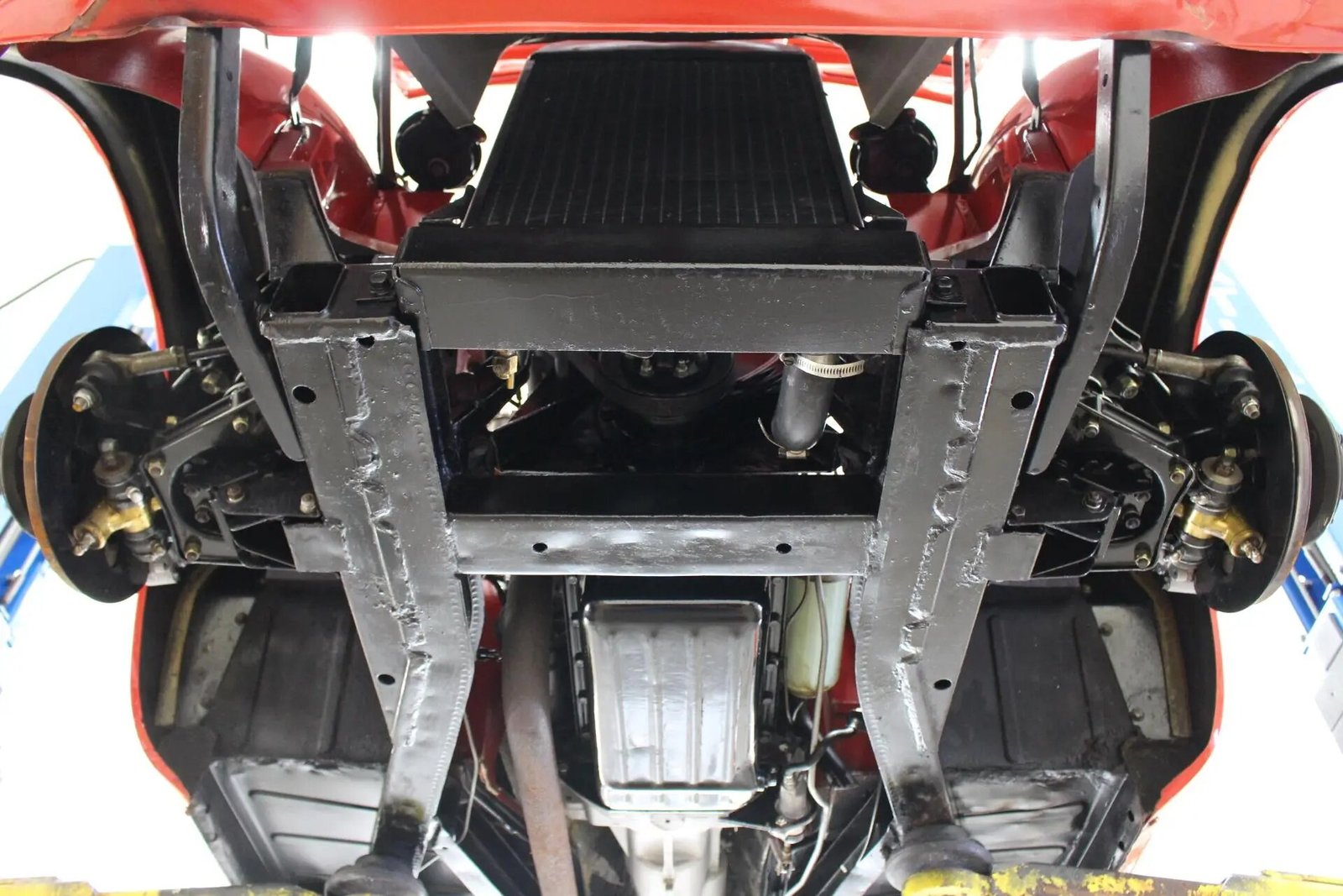The car is finished in red over black upholstery and powered by a 2.1L inline-four paired with a four-speed manual transmission.