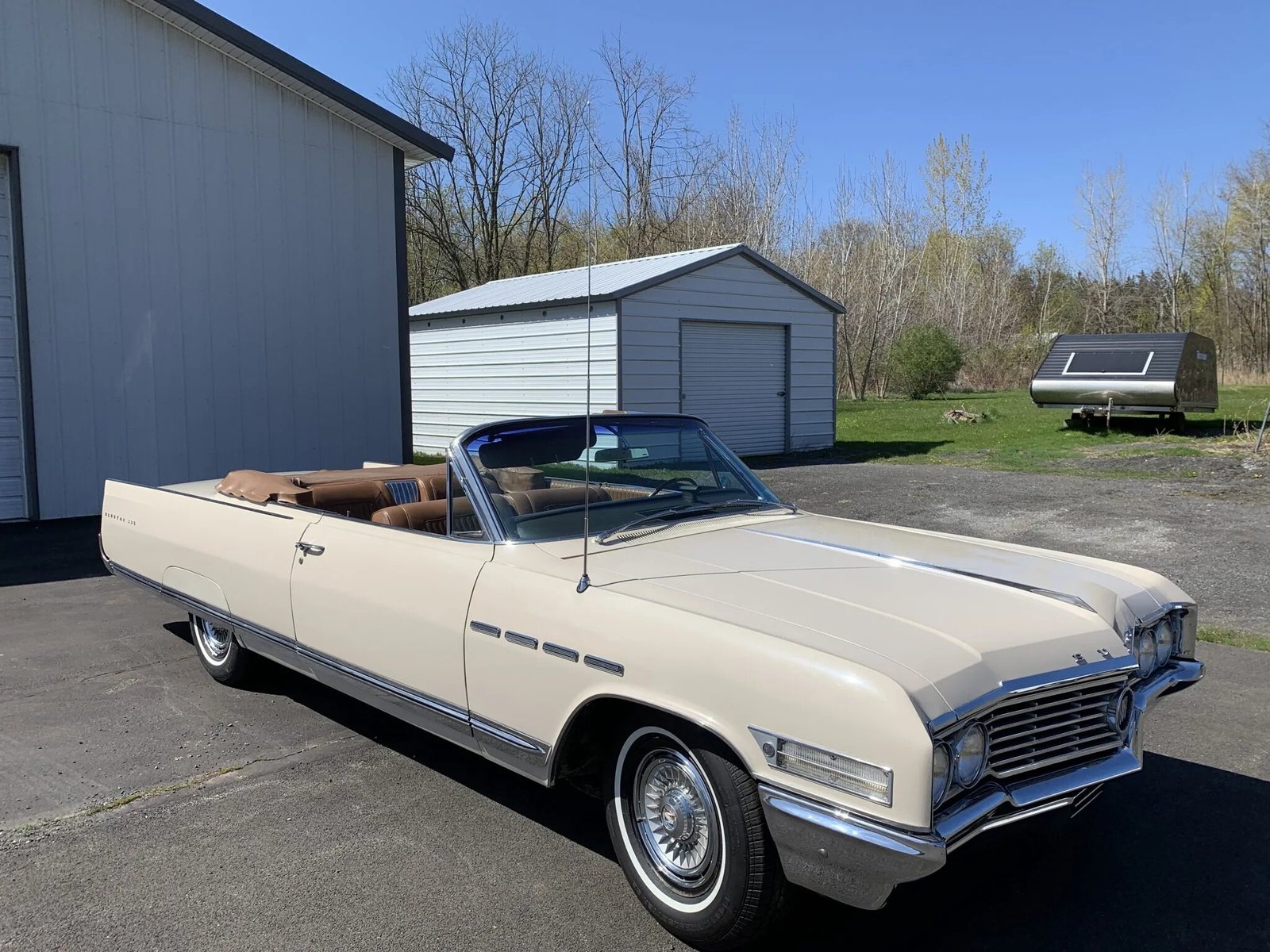 This 1964 Buick Electra 225 convertible is finished in Desert Beige over Saddle leather and powered by a 401ci Wildcat V8 paired with a three-speed Super Turbine automatic transmission.