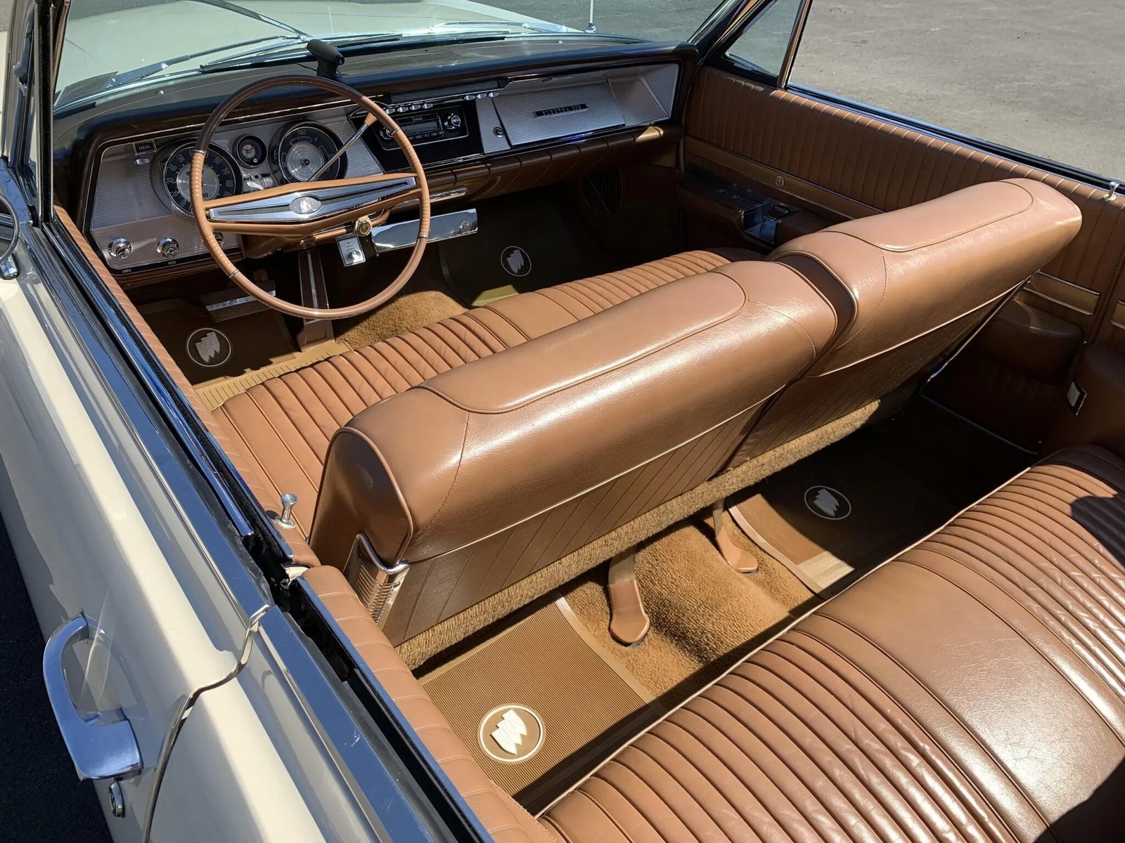 The cabin features Saddle leather bench seats along with matching door panels and carpets.