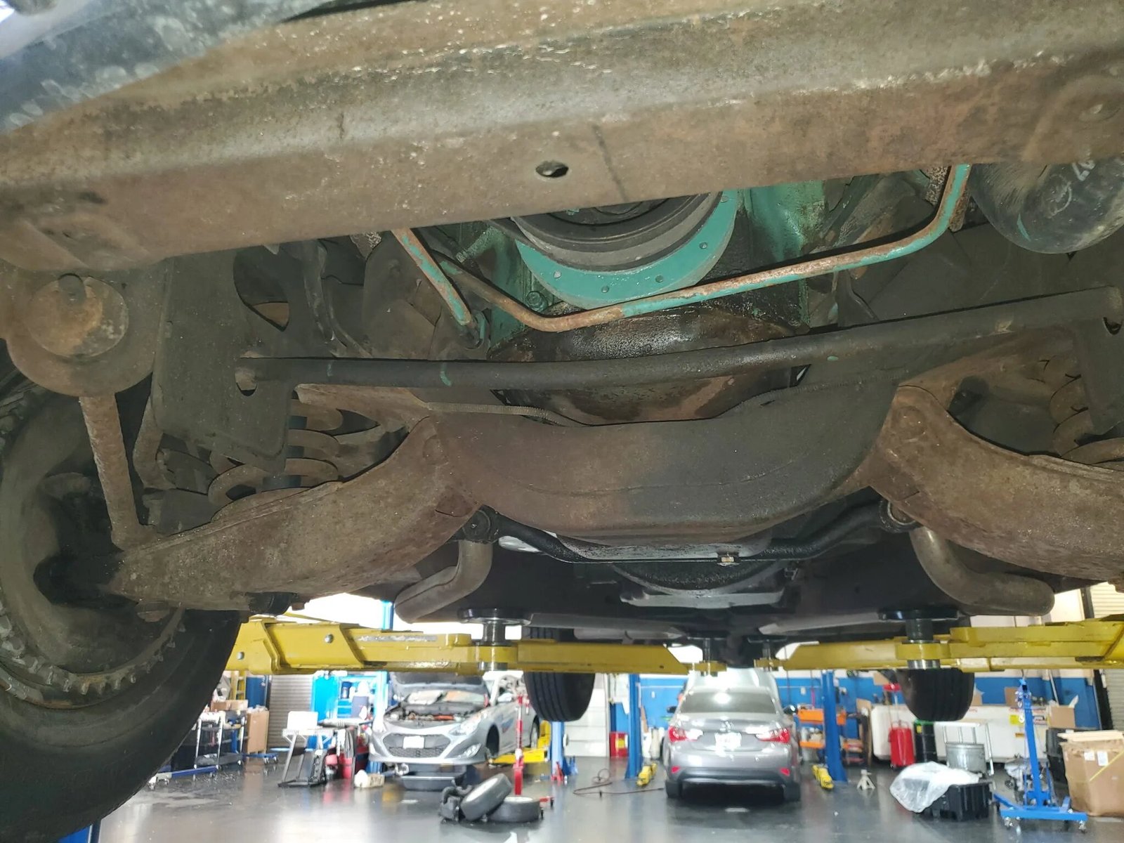 Steel 15″ wheels are fitted with wire-style covers and wear white-stripe tires that were mounted in preparation for sale.