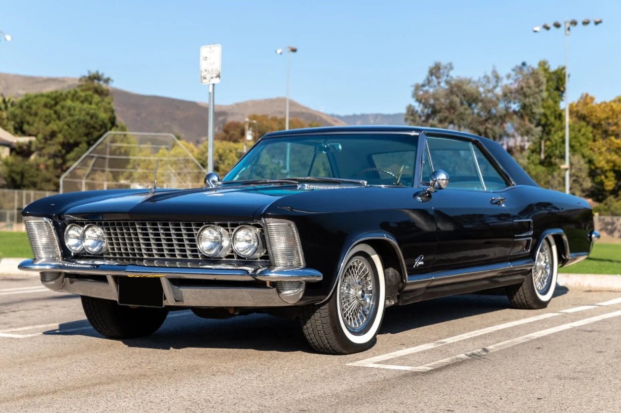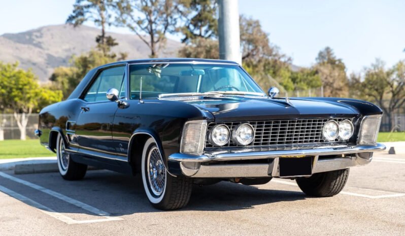 This 1964 Buick Riviera was refurbished circa 1998, the car was refinished in dark blue over white vinyl and is powered by a 425ci “Super Wildcat” V8 paired with a three-speed automatic transmission. Features include dual Carter four-barrel carburetors, air conditioning, power steering, power windows, power-assisted drum brakes, 15″ steel wheels with spoked covers, interior wood trim accents, a dual exhaust system with Magnaflow mufflers, and a RetroTone radio. The springs and shocks were replaced, and service in preparation for sale included changing the oil and flushing the fluids.