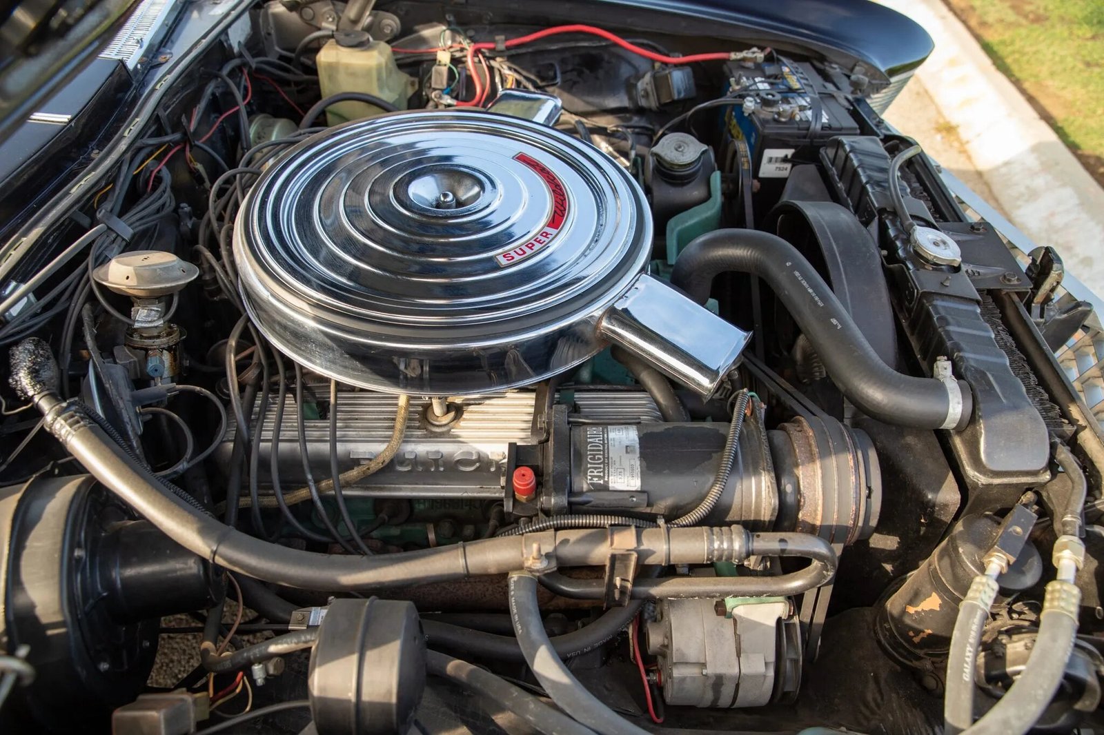 The 425ci “Super Wildcat” V8 breathes through dual Carter four-barrel carburetors and was factory rated at 360 horsepower. Power is delivered to the rear wheels through a three-speed automatic transmission. The aftermarket dual exhaust system is equipped with Magnaflow mufflers.