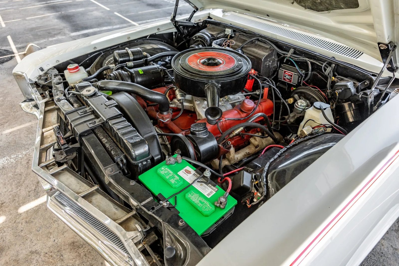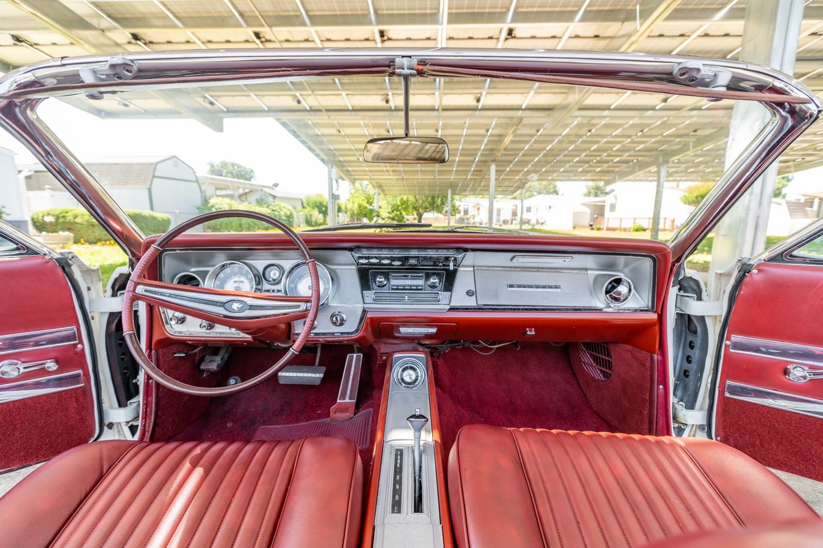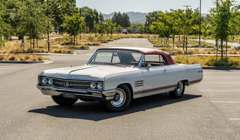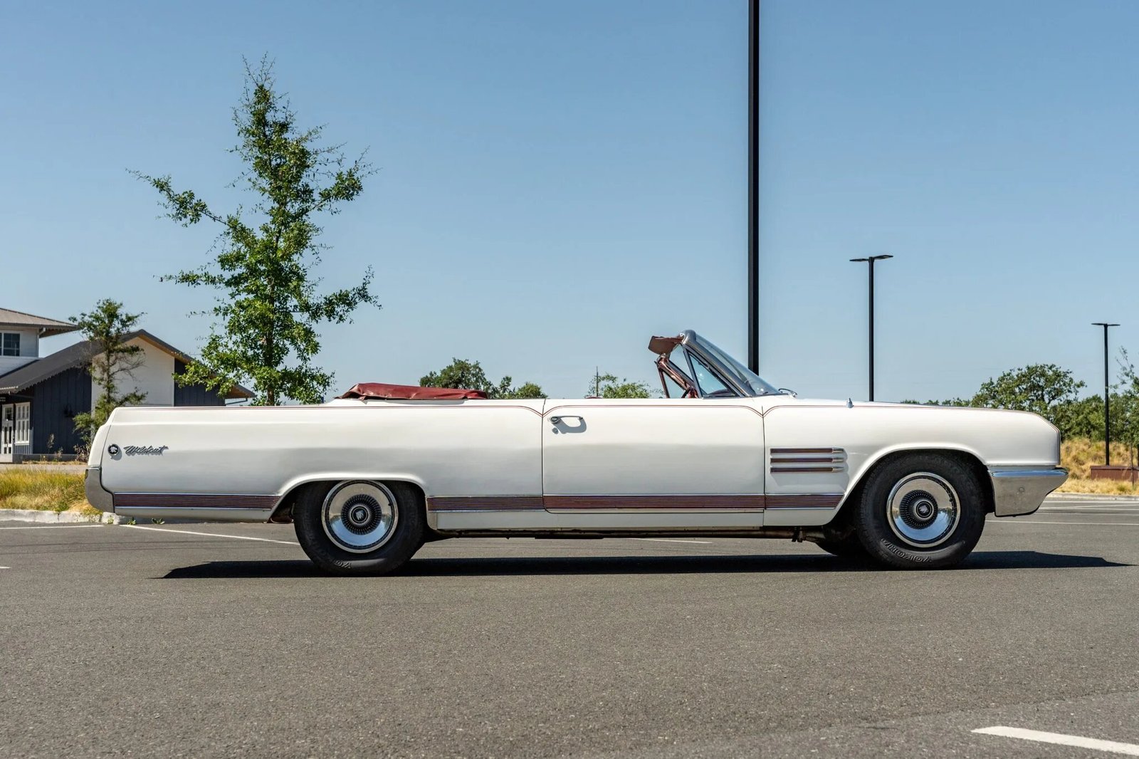 This 1964 Buick Wildcat convertible is finished in white over red vinyl upholstery and powered by a 401ci Wildcat 445 V8 paired with a three-speed automatic transmission.