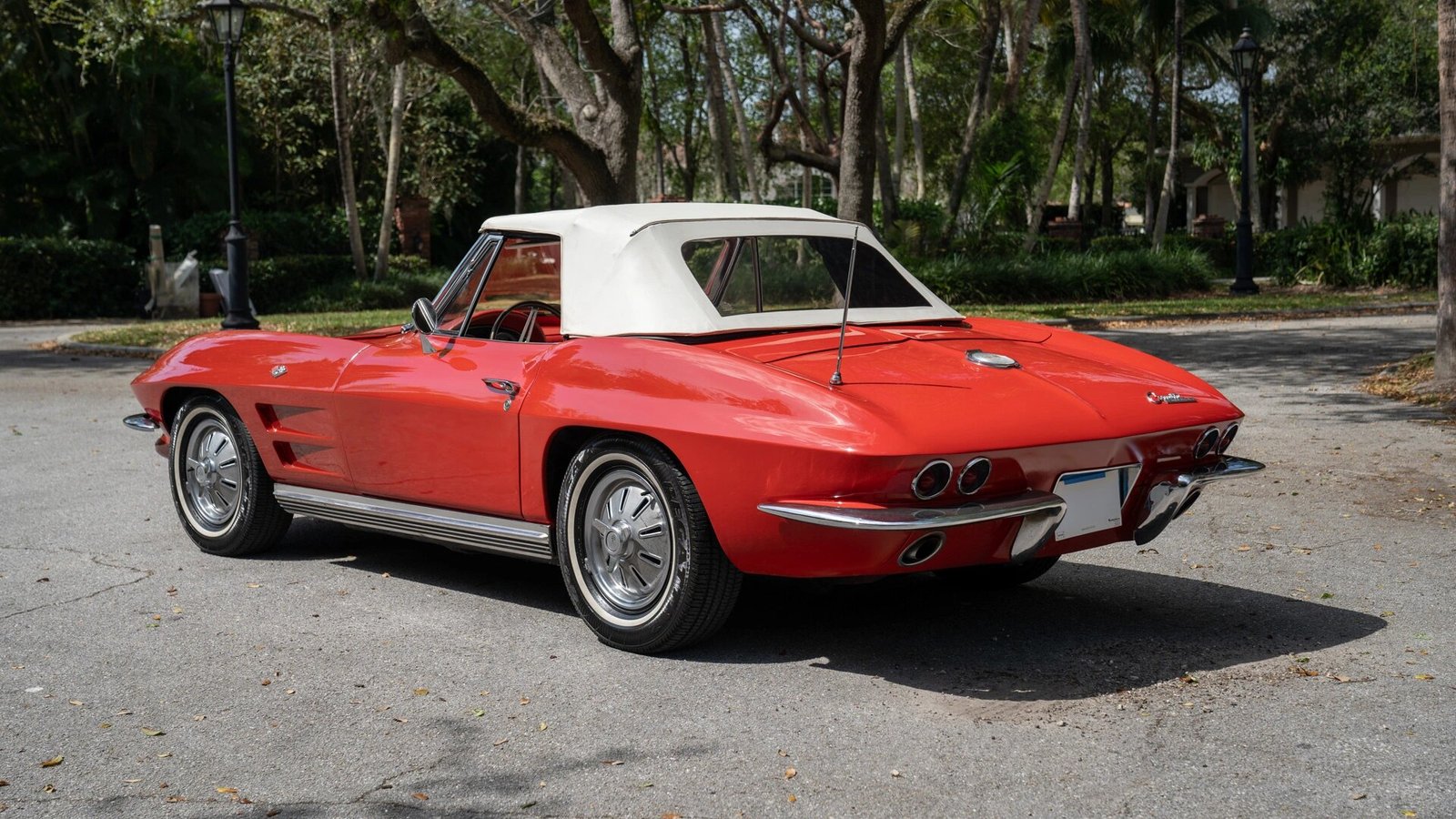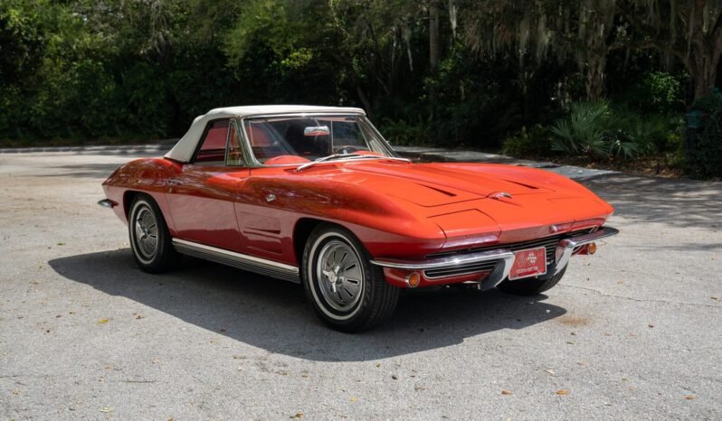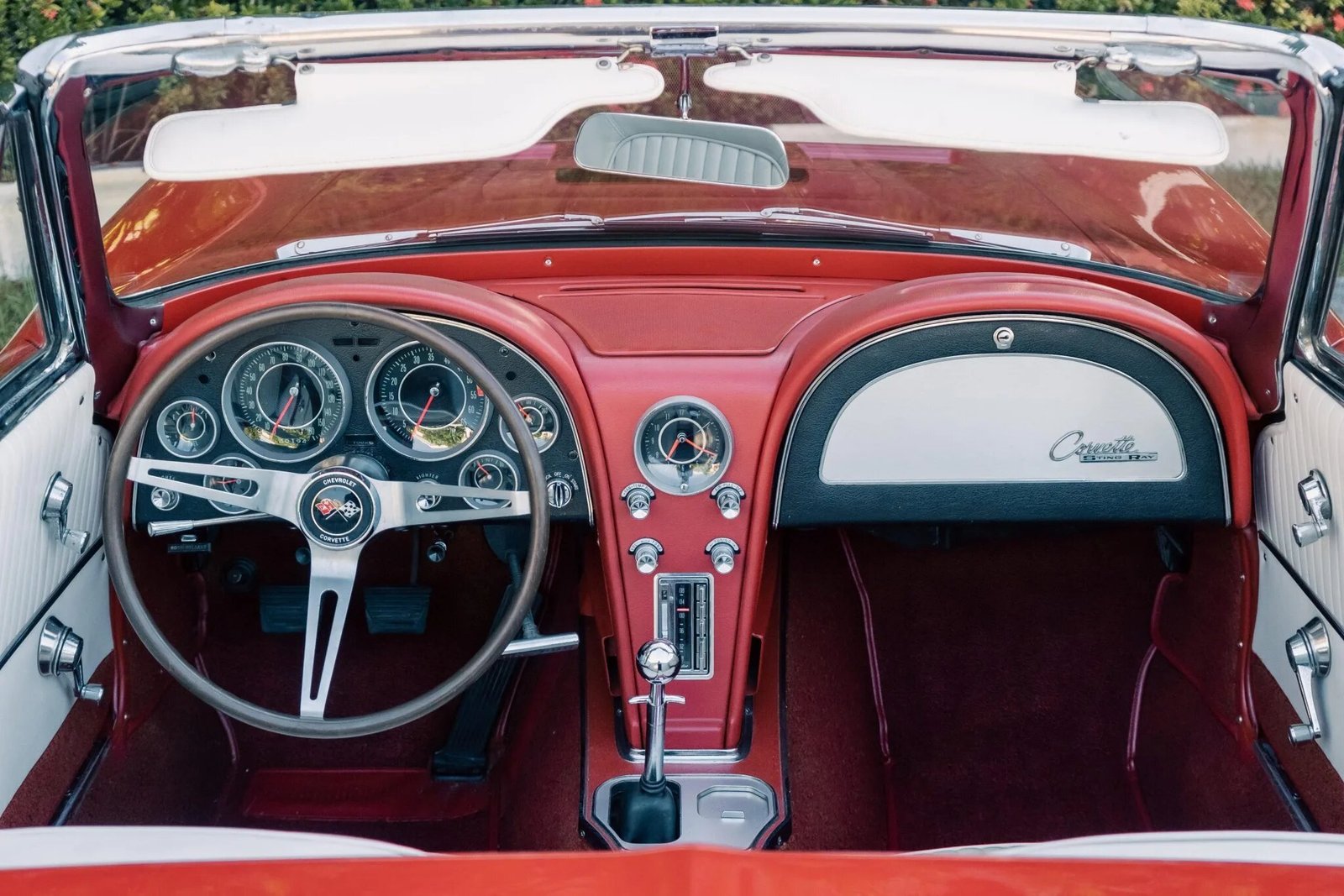 This 1964 Chevrolet Corvette convertible is powered by a numbers-matching 327ci L75 V8 paired with a four-speed manual transmission and is finished in red over white upholstery.