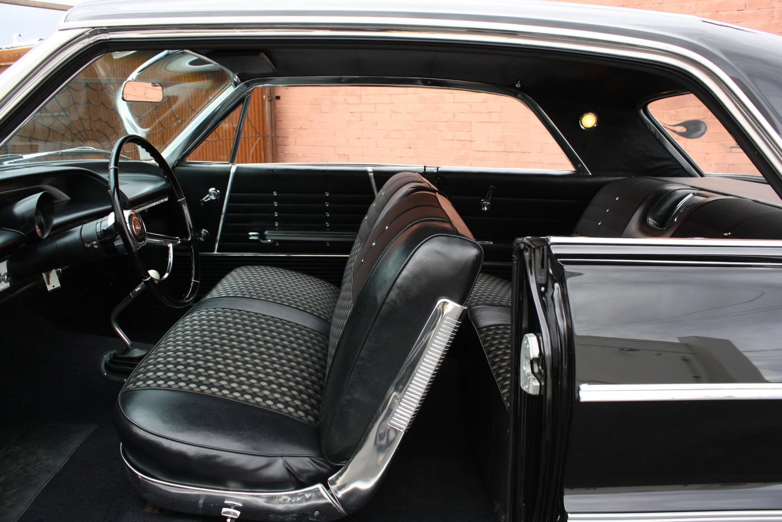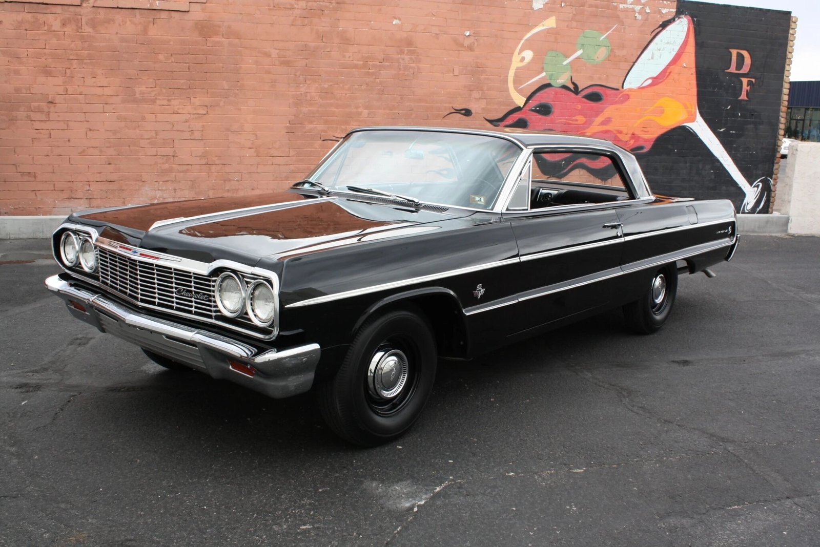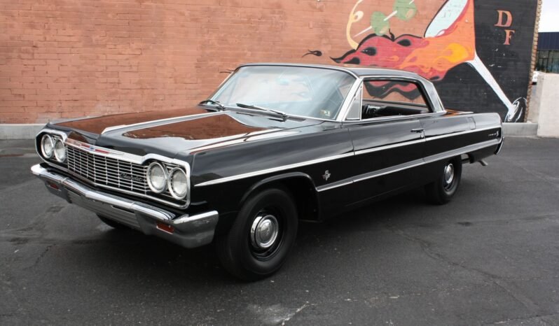 This 1964 Chevrolet Impala is powered by a numbers-matching 409ci V8 featuring dual four-barrel carburetors and paired with a four-speed manual transmission.