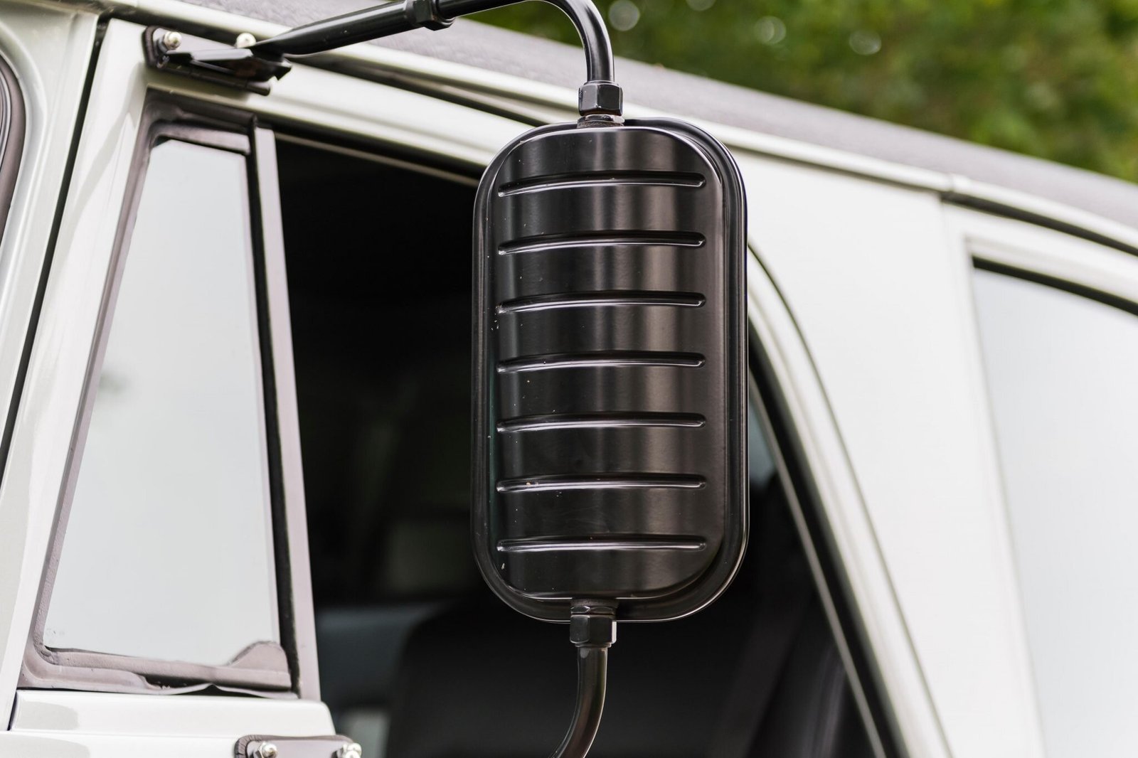 Aftermarket bumpers and lighting were installed along with an integrated front winch, and the grille, side steps, mirrors, and badging also are finished in black.