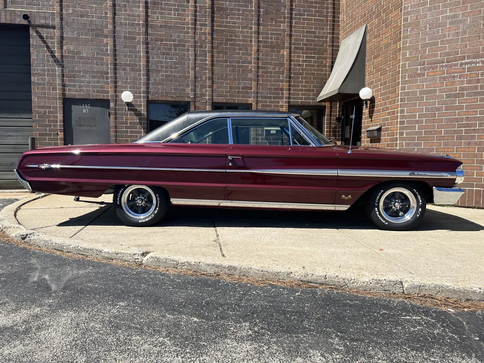 Gray 15″ American Racing Torq Thrust wheels have polished lips and are mounted with Cooper Cobra Radial G/T tires sized 215/65 up front and 235/60 out back.