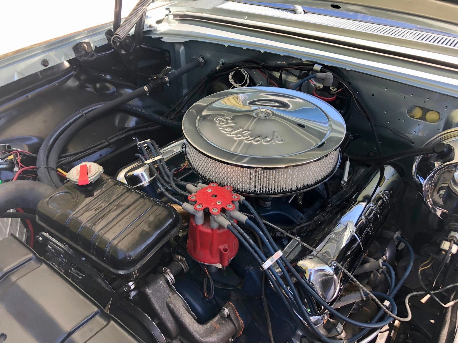 The car is equipped with 357ci V8 featuring an electronic ignition, custom camshaft, and headers and is mated to a 3-speed Cruise-O-Matic transmission.