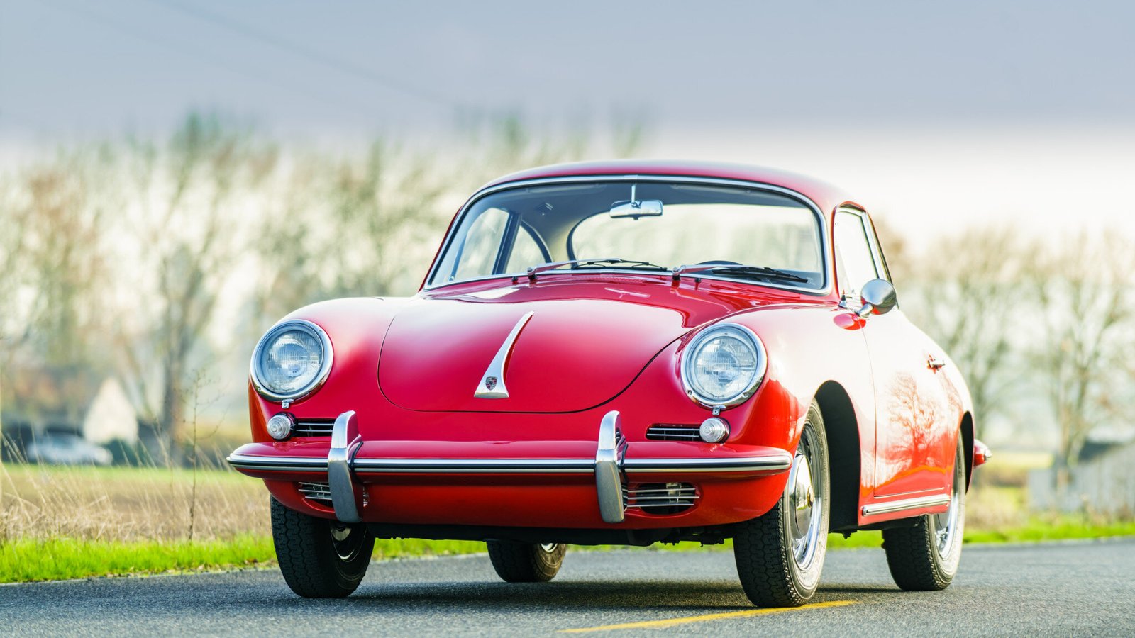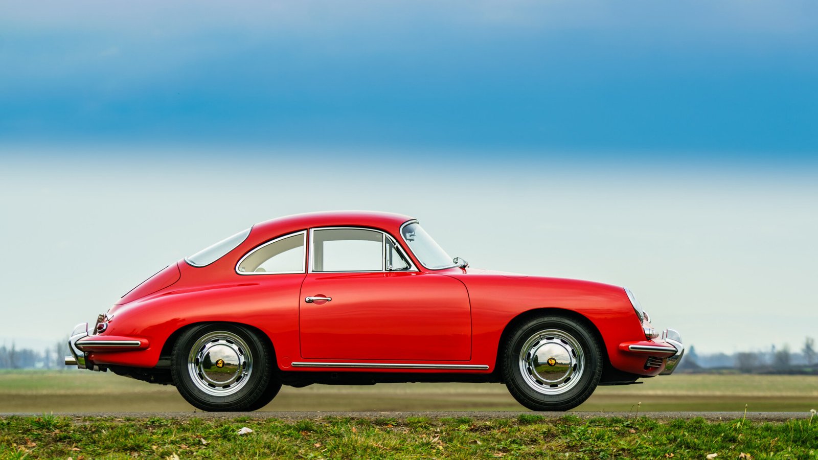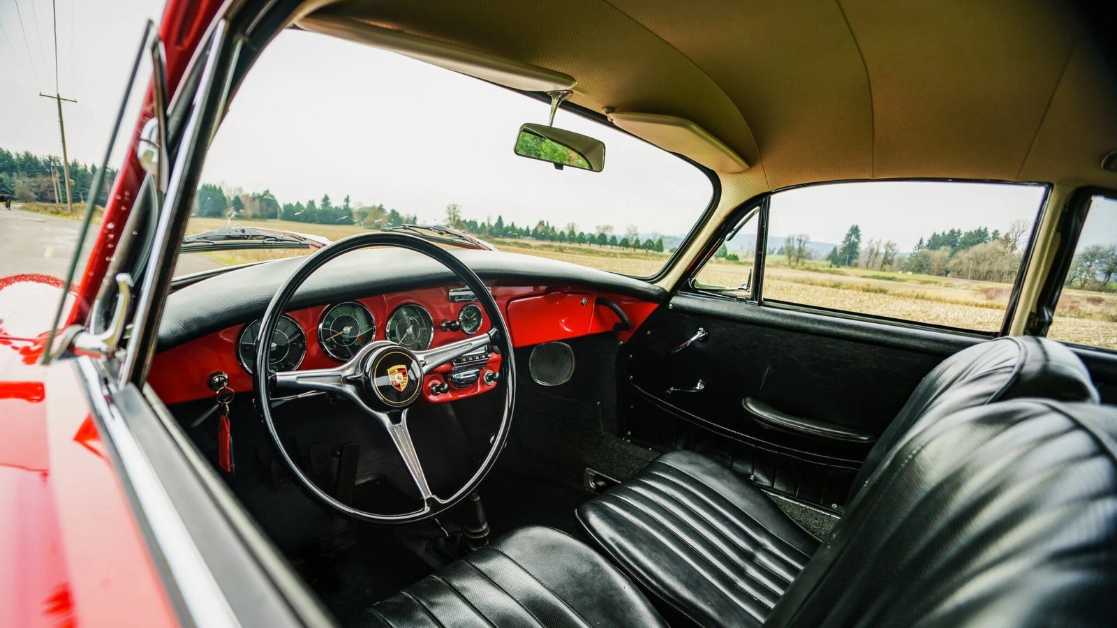 This 1964 Porsche 356SC coupe is a matching-numbers example finished in correct Signal Red with a black vinyl interior.