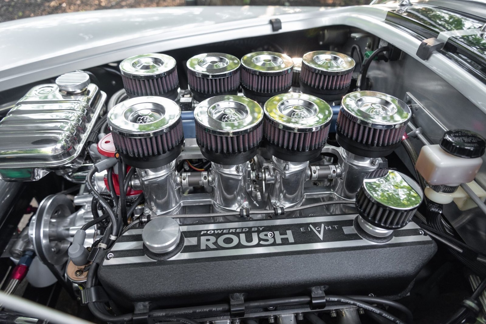 The Roush-built 402ci V8 is fitted with a Weber-style eight-stack fuel injection system controlled by an Accel DFI ECU.