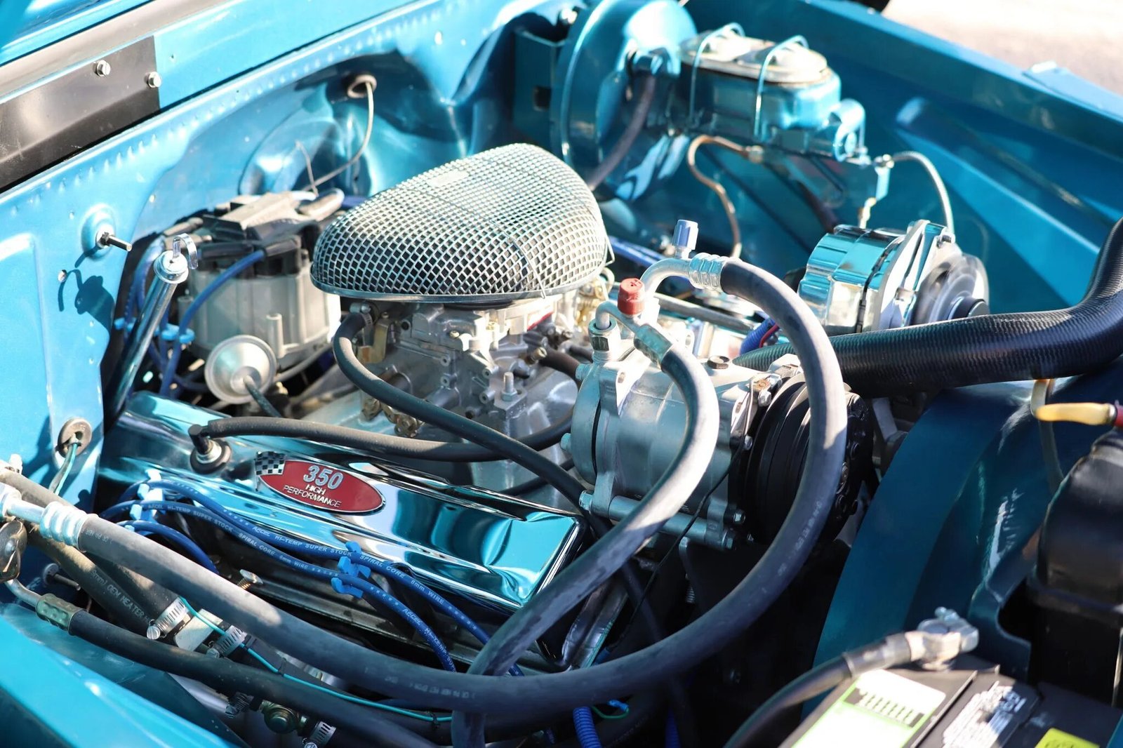 The replacement 350ci V8 breathes through an Edelbrock carburetor and sends power to the rear wheels through a three-speed TH350 automatic transmission equipped with a shift kit.