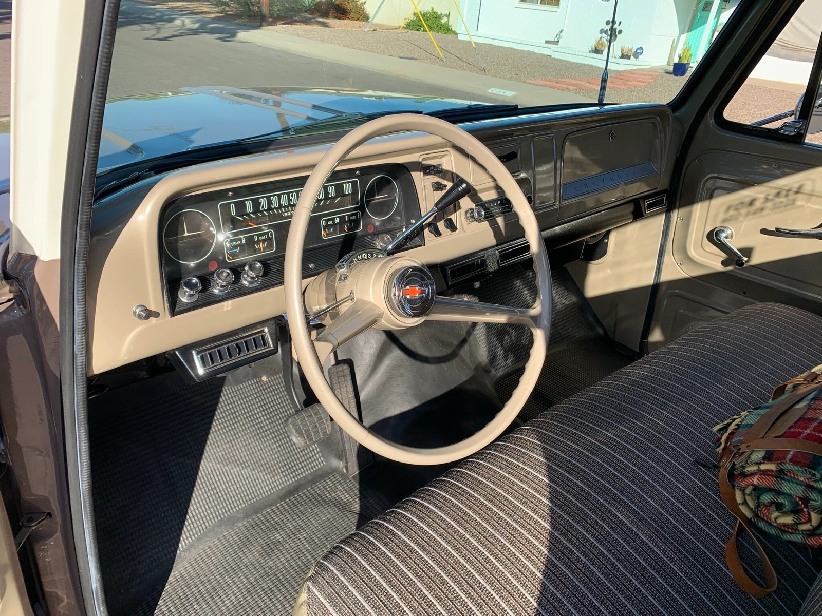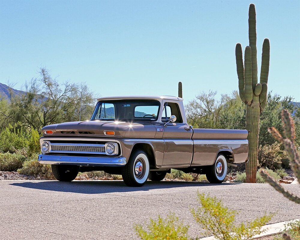 Finished in a two-tone beige and white paint scheme over a reupholstered beige interior, the truck is powered by a replacement 400ci small-block V8 mated to a 700R4 four-speed automatic transmission.