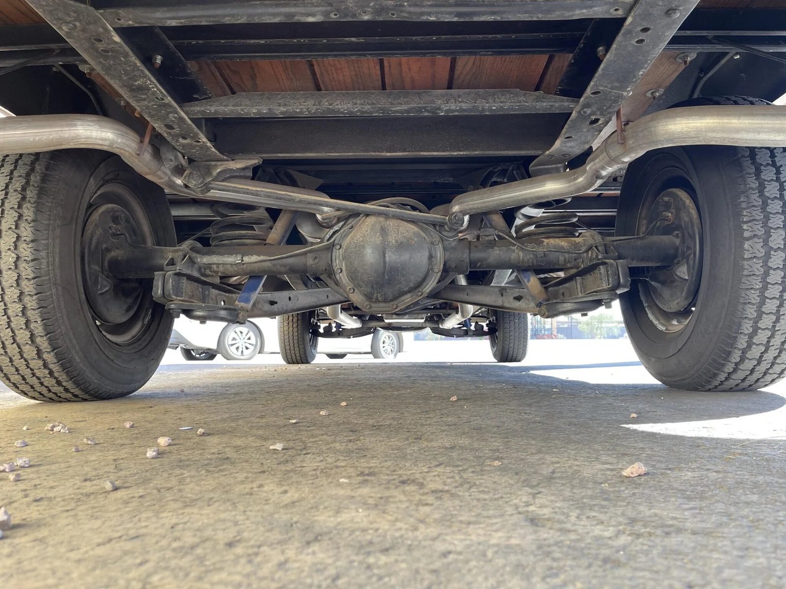 The windshield was replaced, and the bed floor was replaced with stained red oak boards.