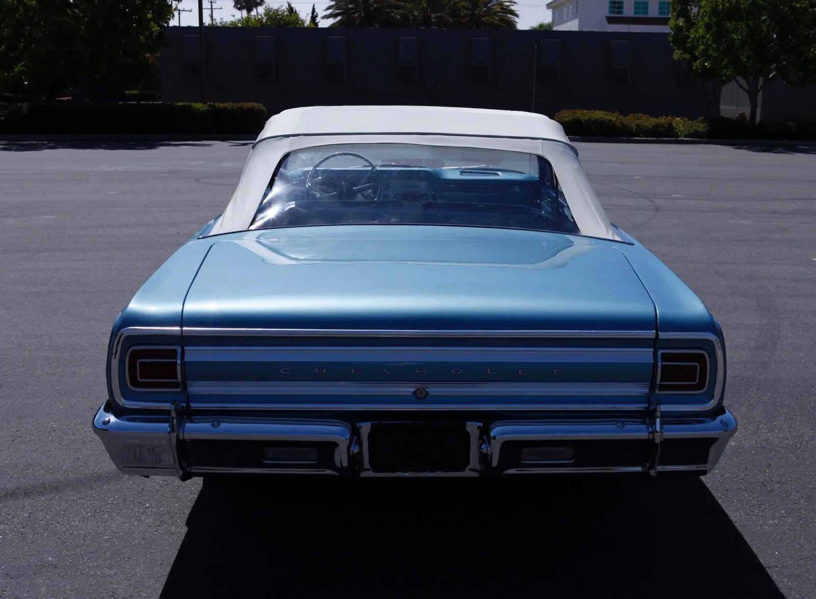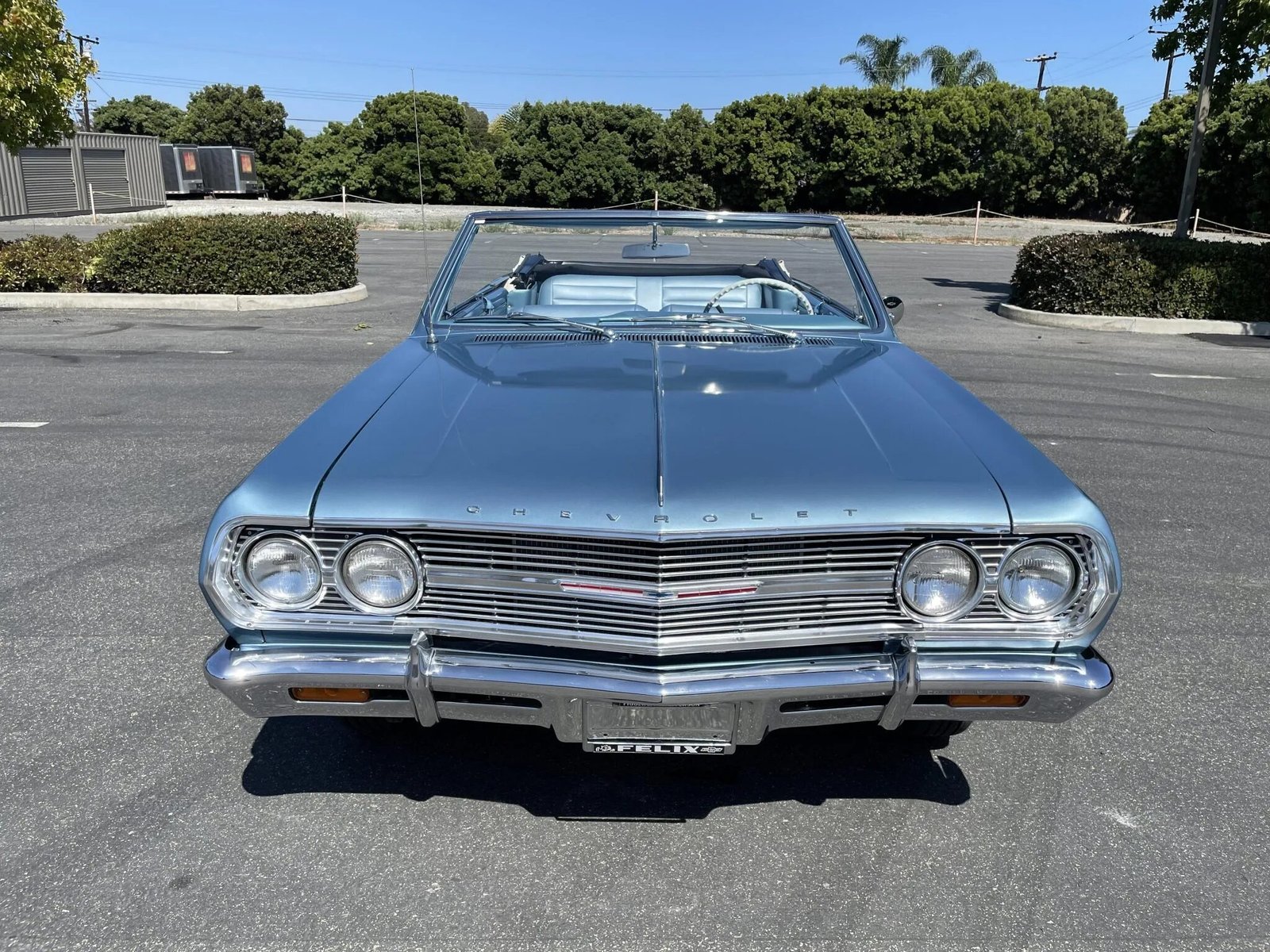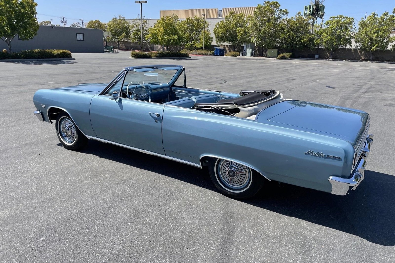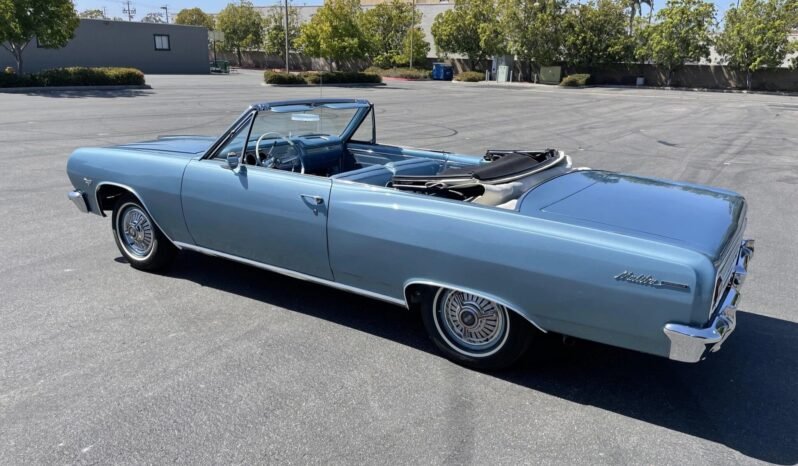 This 1965 Chevrolet Chevelle Malibu convertible is finished in blue over a matching interior and is powered by a 283ci V8 paired with a three-speed automatic transmission.