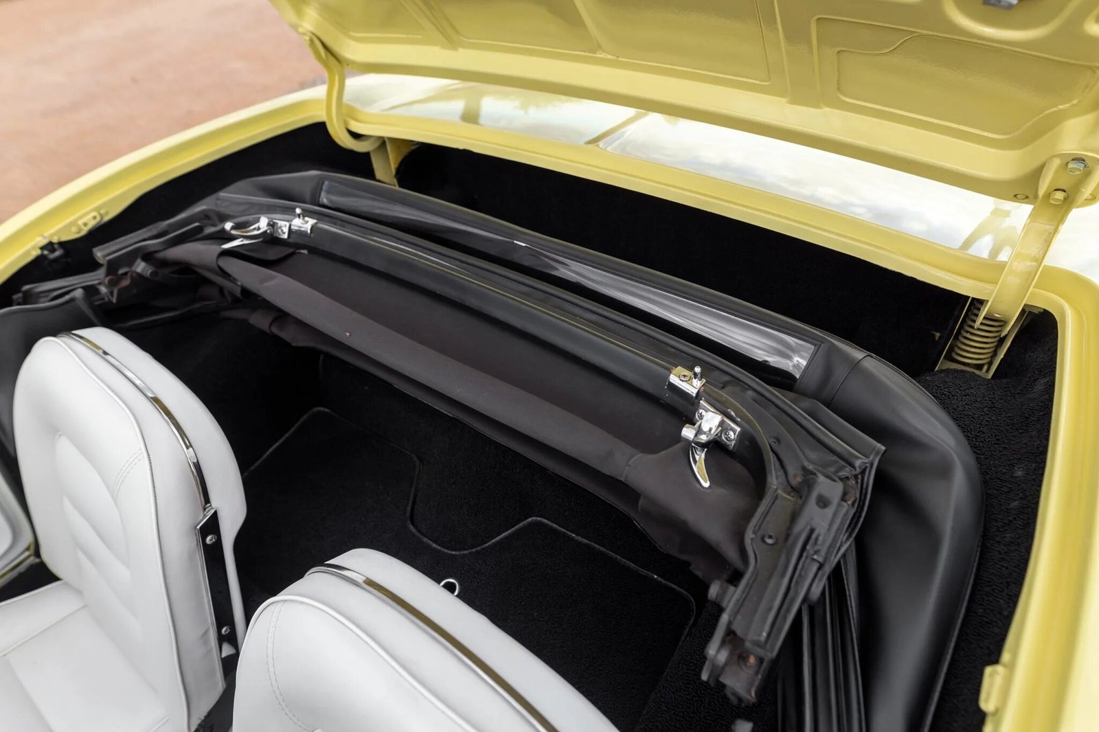 Finished from the factory in Goldwood Yellow (XX), the car was repainted and the windshield was replaced during the refurbishment process.