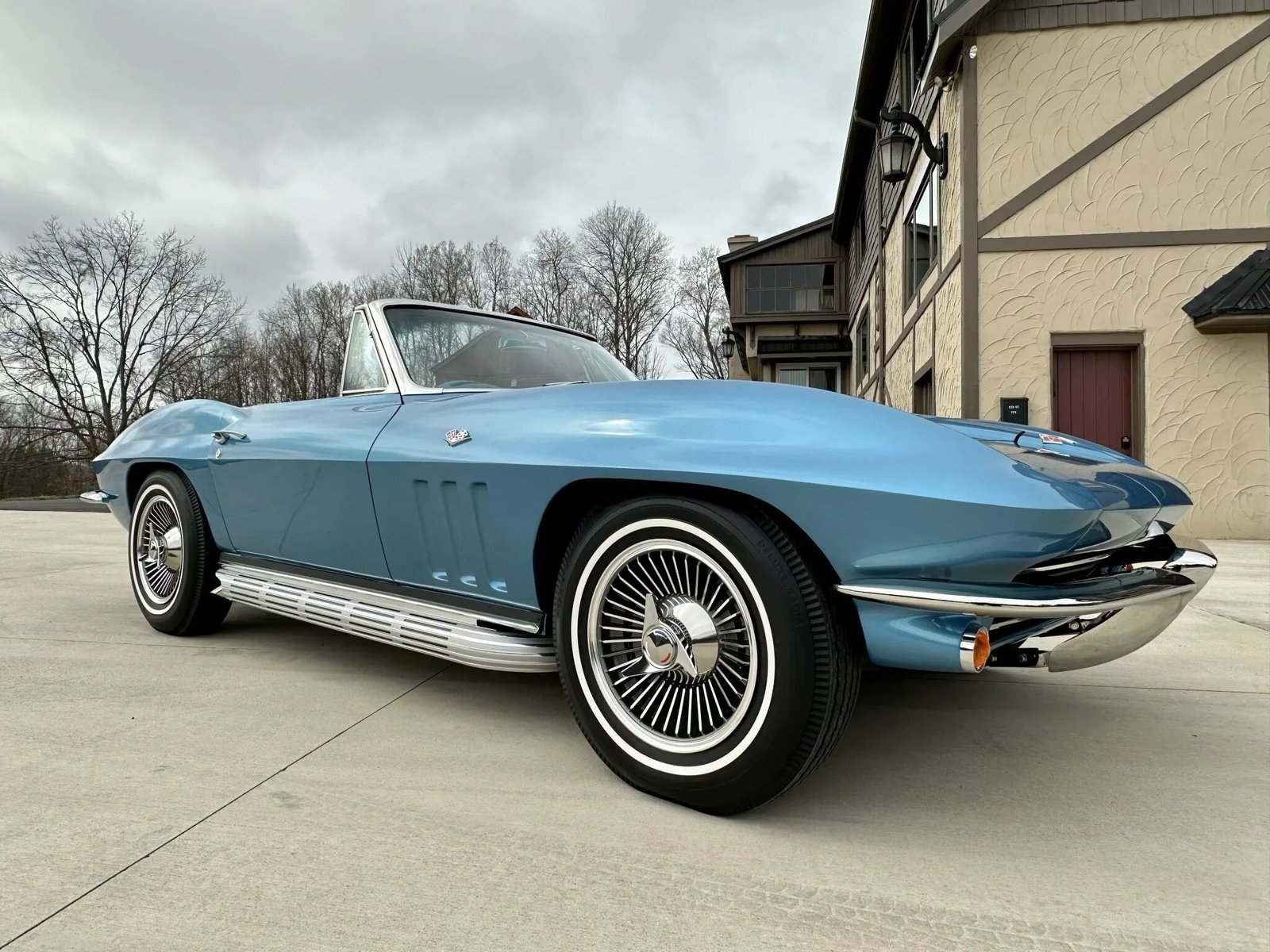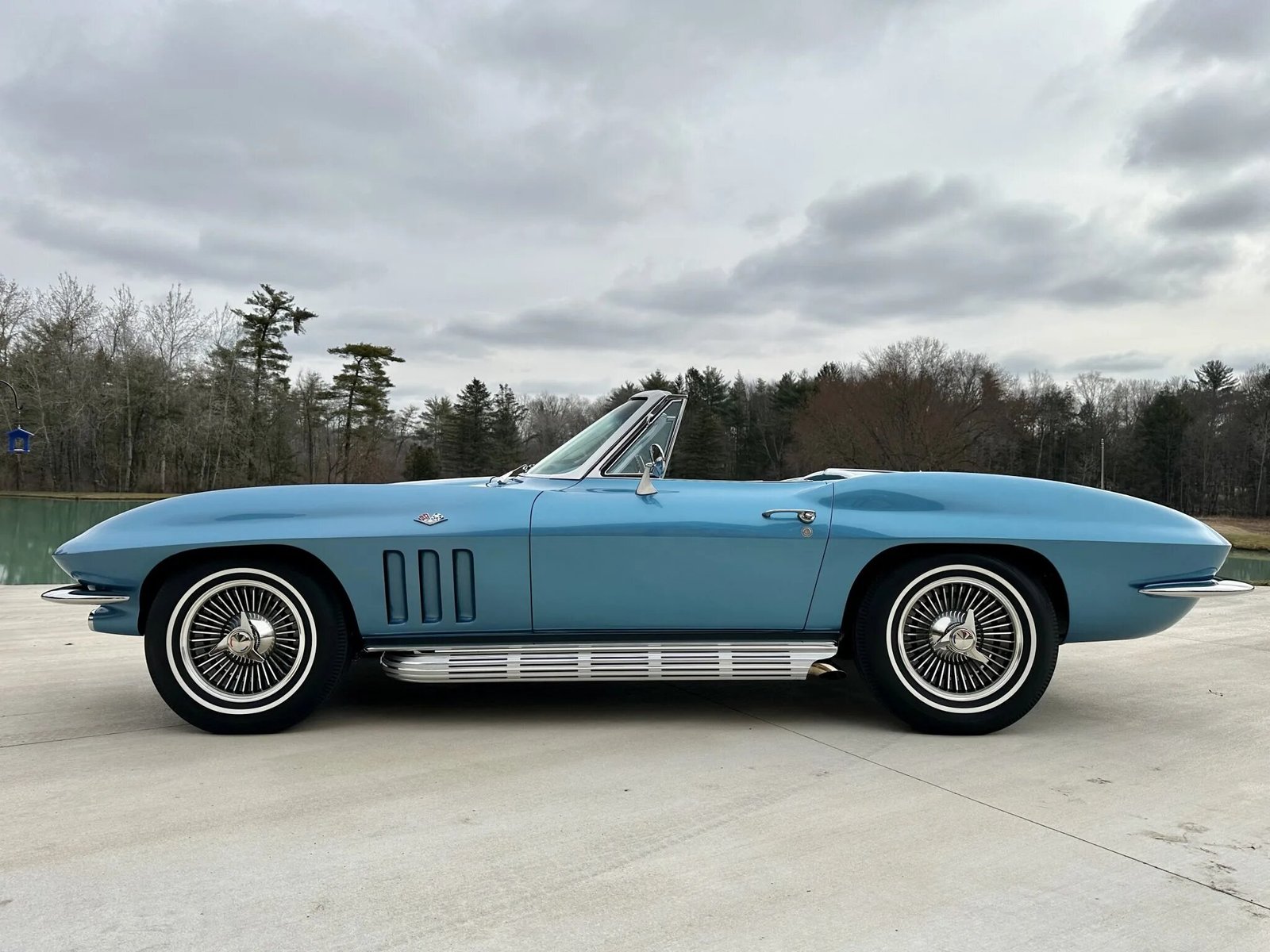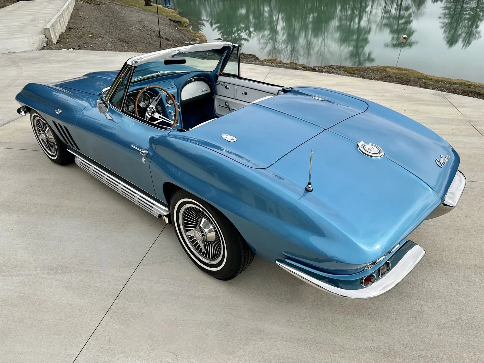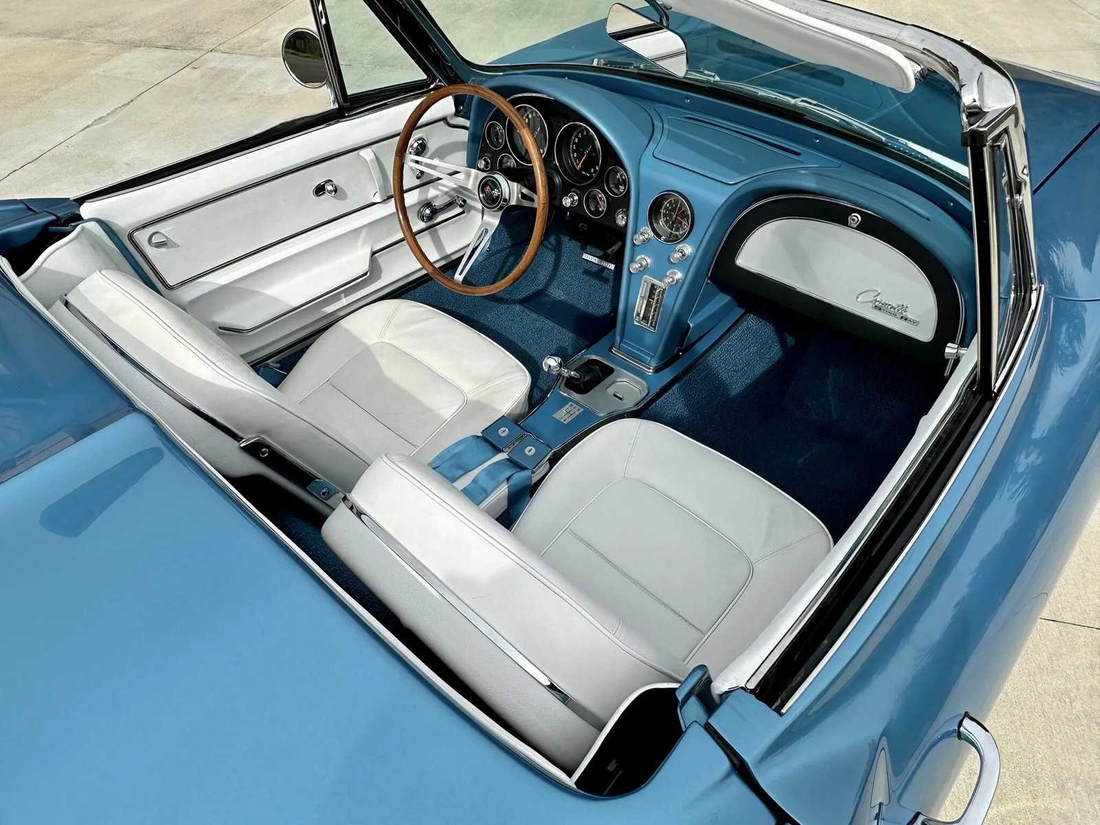The car left the factory finished in Nassau Blue (FF) and was repainted, at which time the white convertible top was replaced.