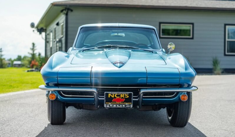 This 1965 Chevrolet Corvette coupe has been honored with Bloomington Gold Survivor certification as well as NCRS Top Flight and Bowtie awards. The car is powered by a fuel-injected 327ci L84 V8 paired with a four-speed manual transmission and is finished in Nassau Blue over blue vinyl upholstery. Equipment includes a Positraction differential, 15″ steel wheels, four-wheel disc brakes, power windows, an AM/FM radio, chrome bumpers, and retractable headlights.