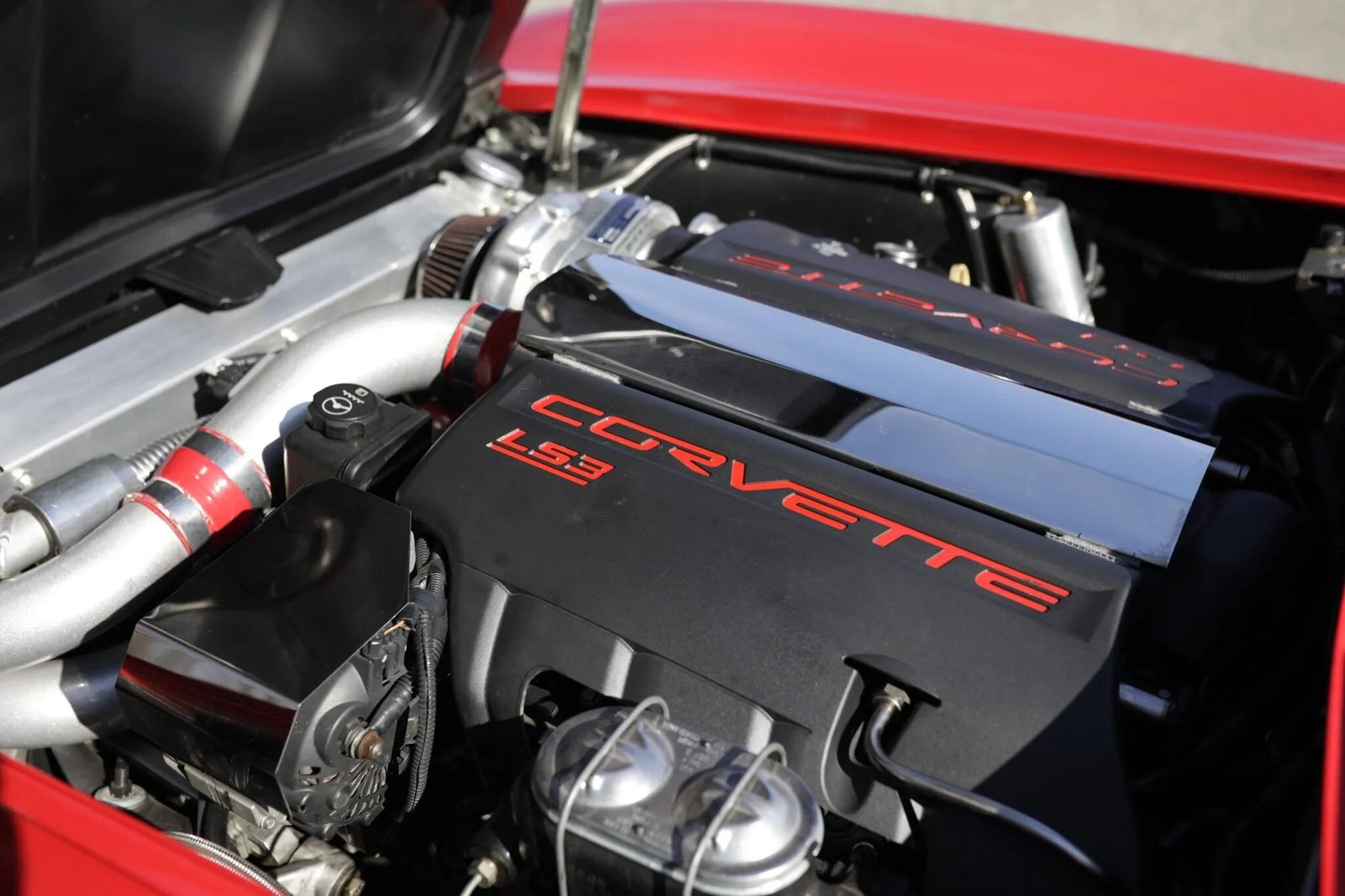 The 6.2-liter LS3 V8 is equipped with a ProCharger supercharger, aluminum cylinder heads, a high-lift hydraulic roller camshaft, and stainless-steel headers flowing into a stainless-steel dual exhaust system.
