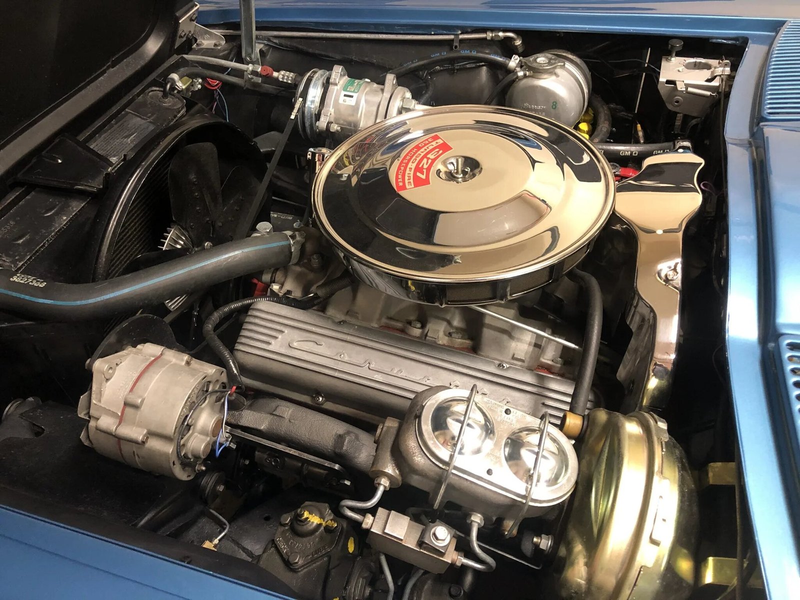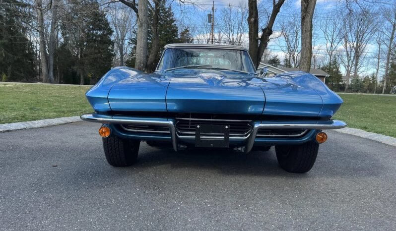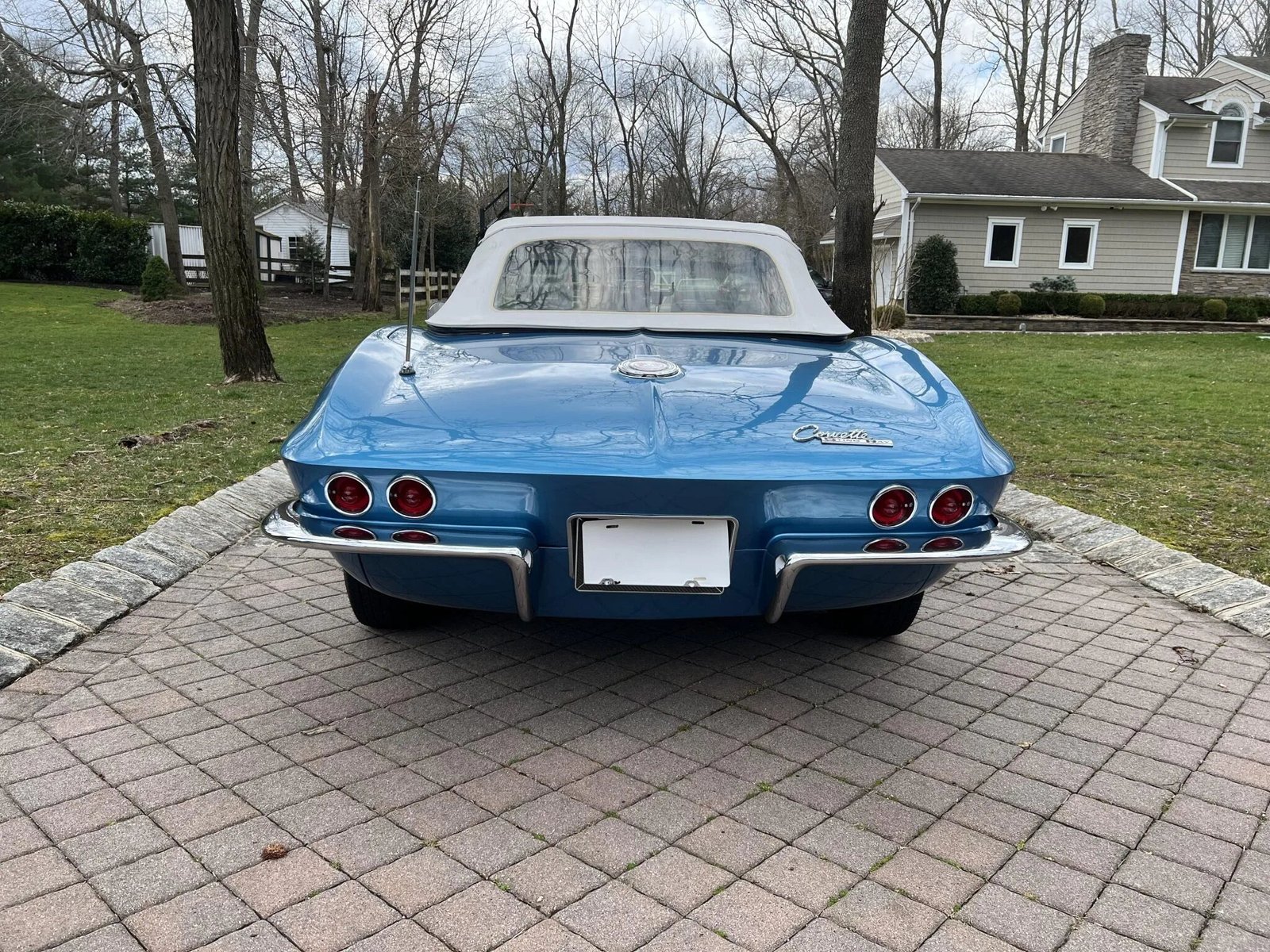 This 1965 Chevrolet Corvette convertible is finished in Nassau Blue over white and powered by a numbers-matching 327ci V8 paired with a close-ratio four-speed manual transmission.