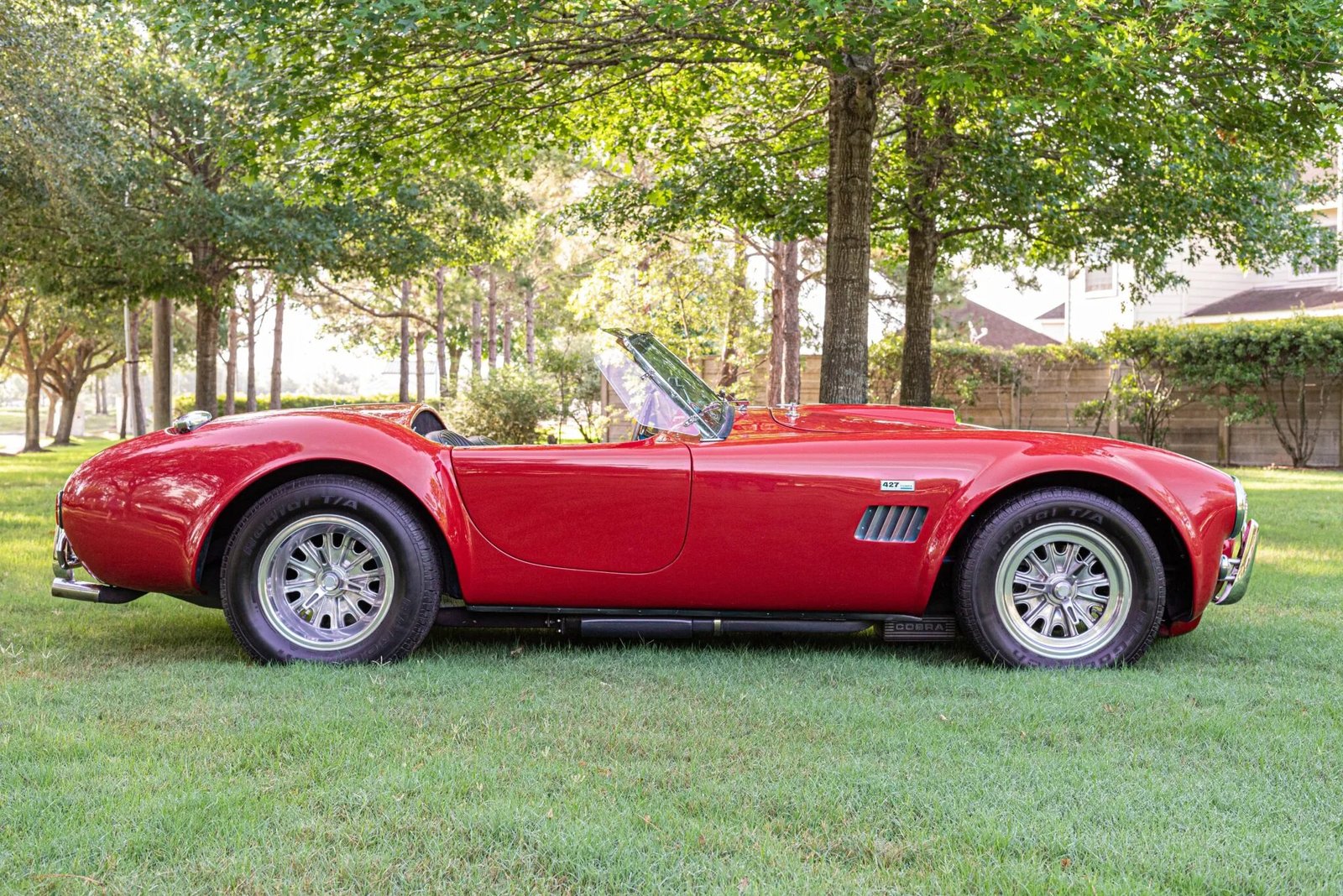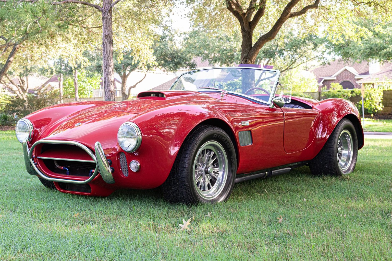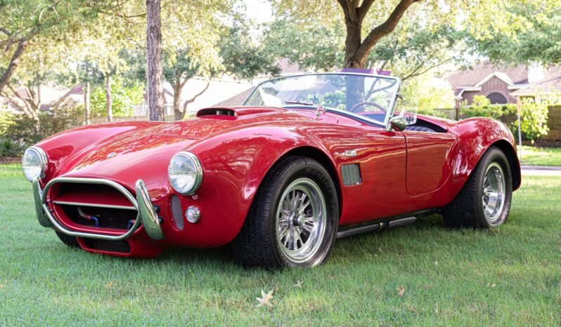 This ERA 427 is a Shelby Cobra replica that was produced by ERA Replica Automobiles of New Britain, Connecticut, and it is finished in Candy Apple Red over black leather. Power is provided by a 472ci V8 paired with a Toploader close-ratio four-speed manual transmission and a Salisbury limited-slip differential with 3.31:1 gears. Features include independent rear suspension from a Jaguar, inboard rear disc brakes, 15″ Halibrand knock-off wheels, Spax adjustable coilovers, four Weber carburetors with velocity stacks, an MSD digital ignition, a Mallory distributor, dual rear-exit exhaust system with Borla Pro XS mufflers, and Stewart Warner gauges.