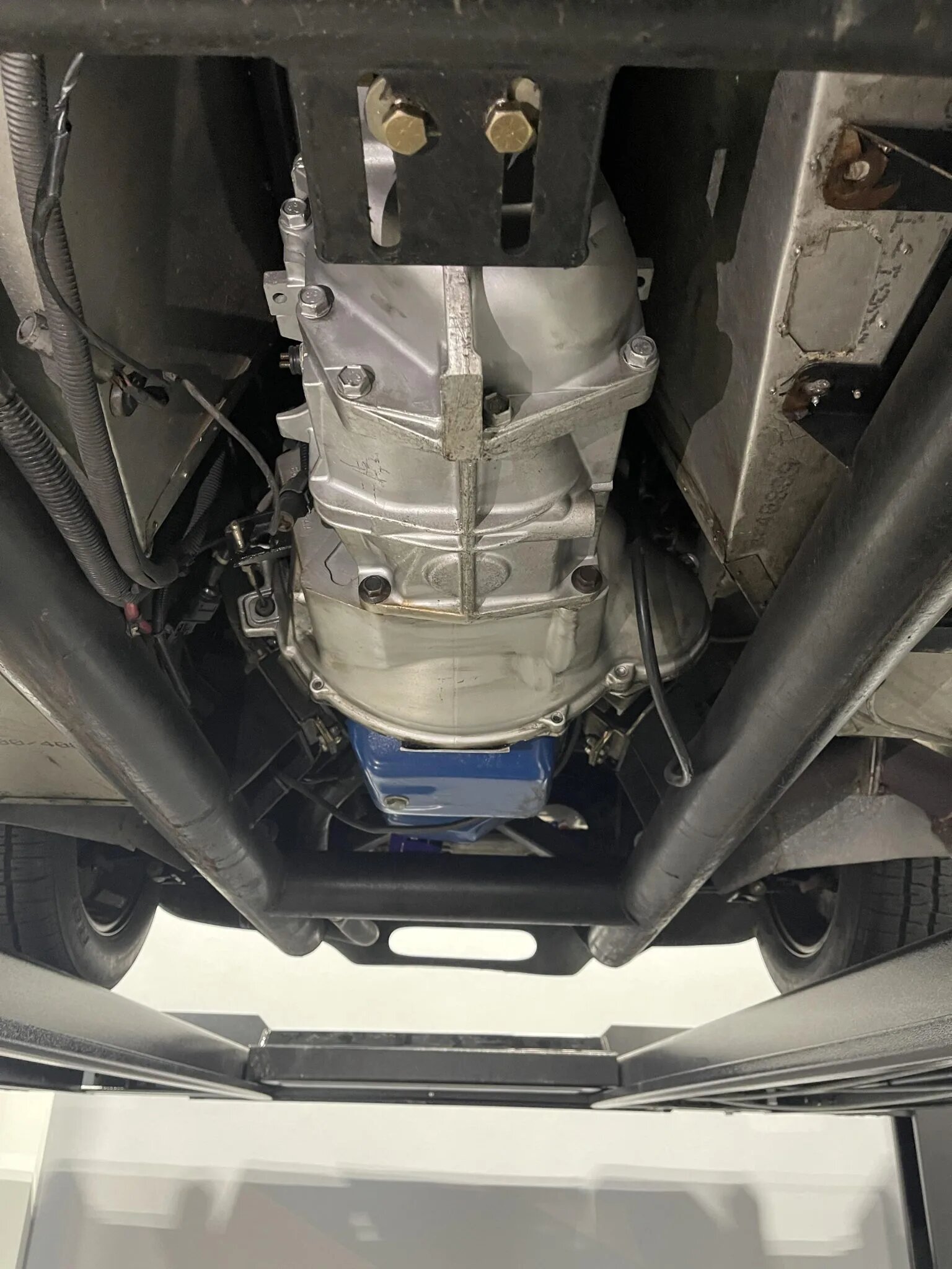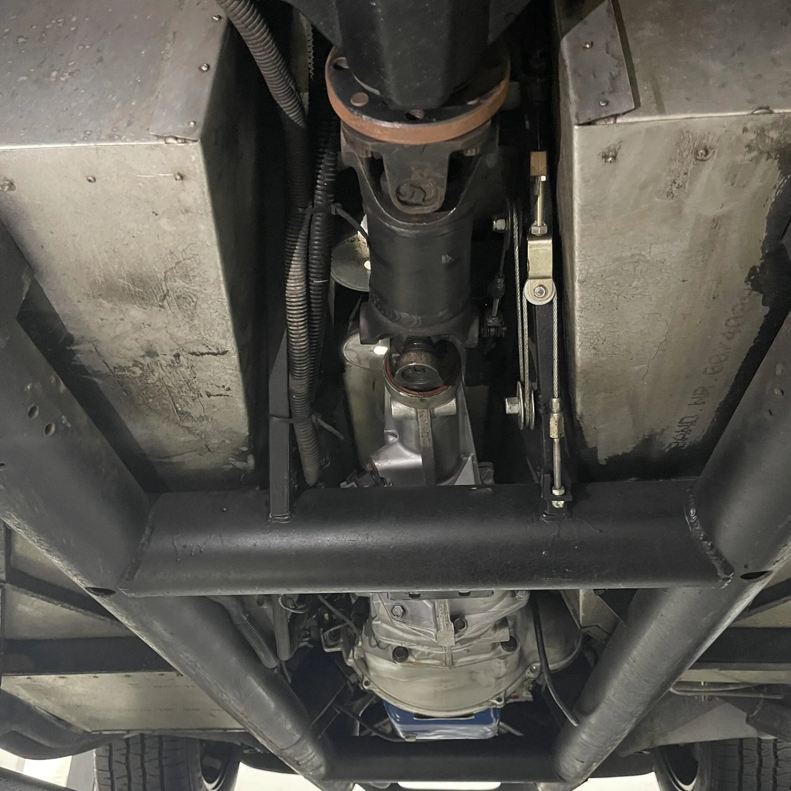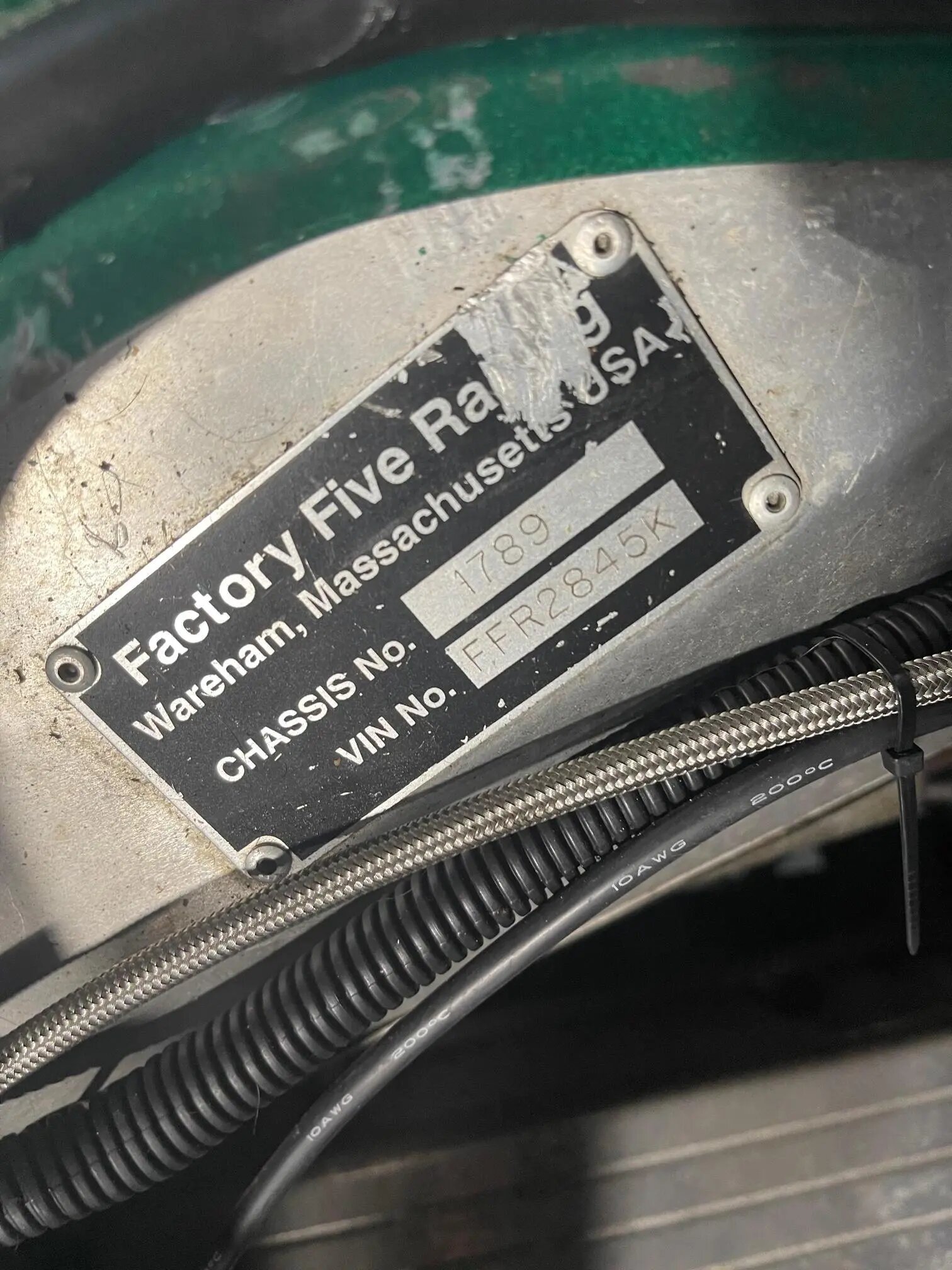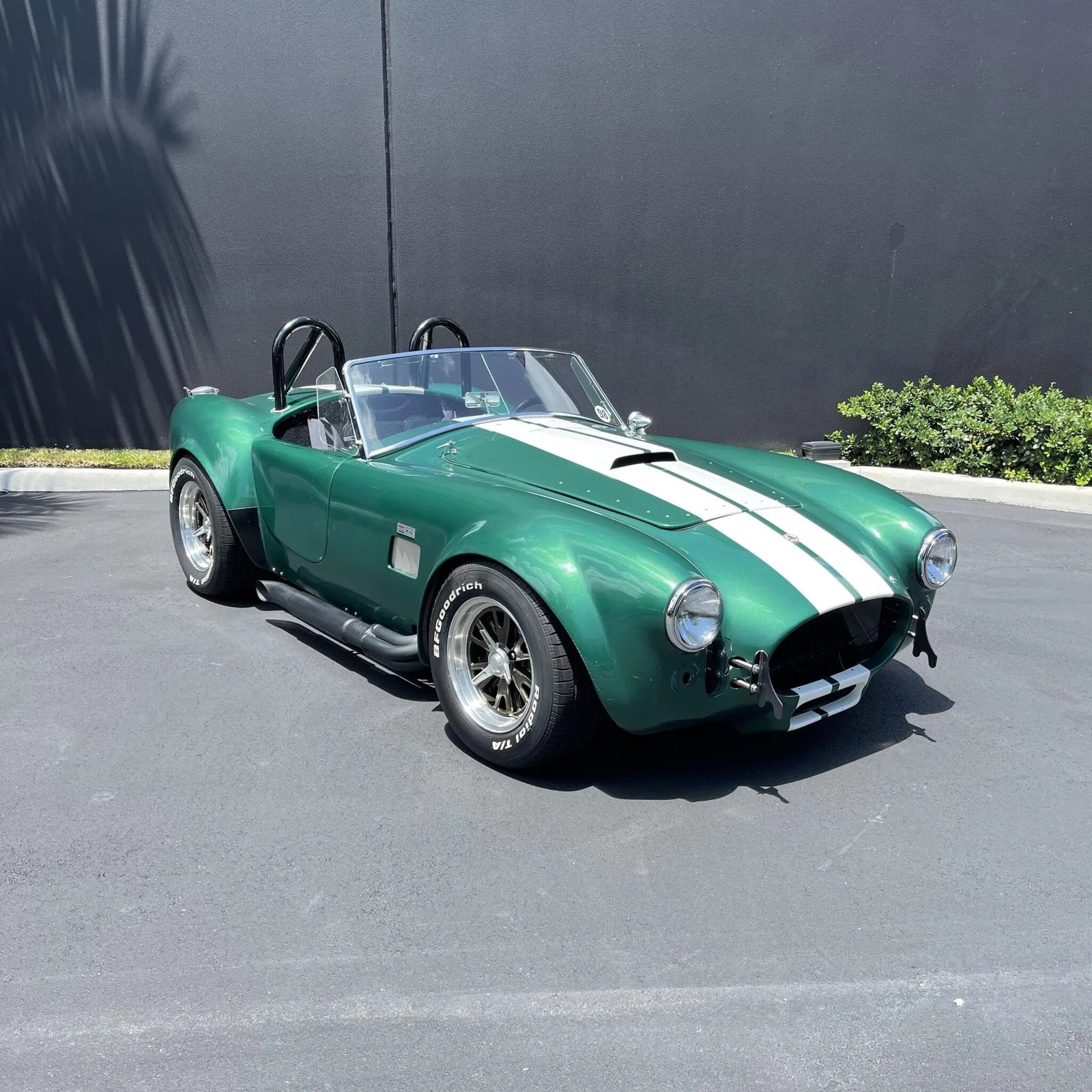 Four-lug 15″ Halibrand-style wheels with faux knockoffs are wrapped in BFGoodrich Radial T/A tires sized 235/60 up front and 295/50 in back.