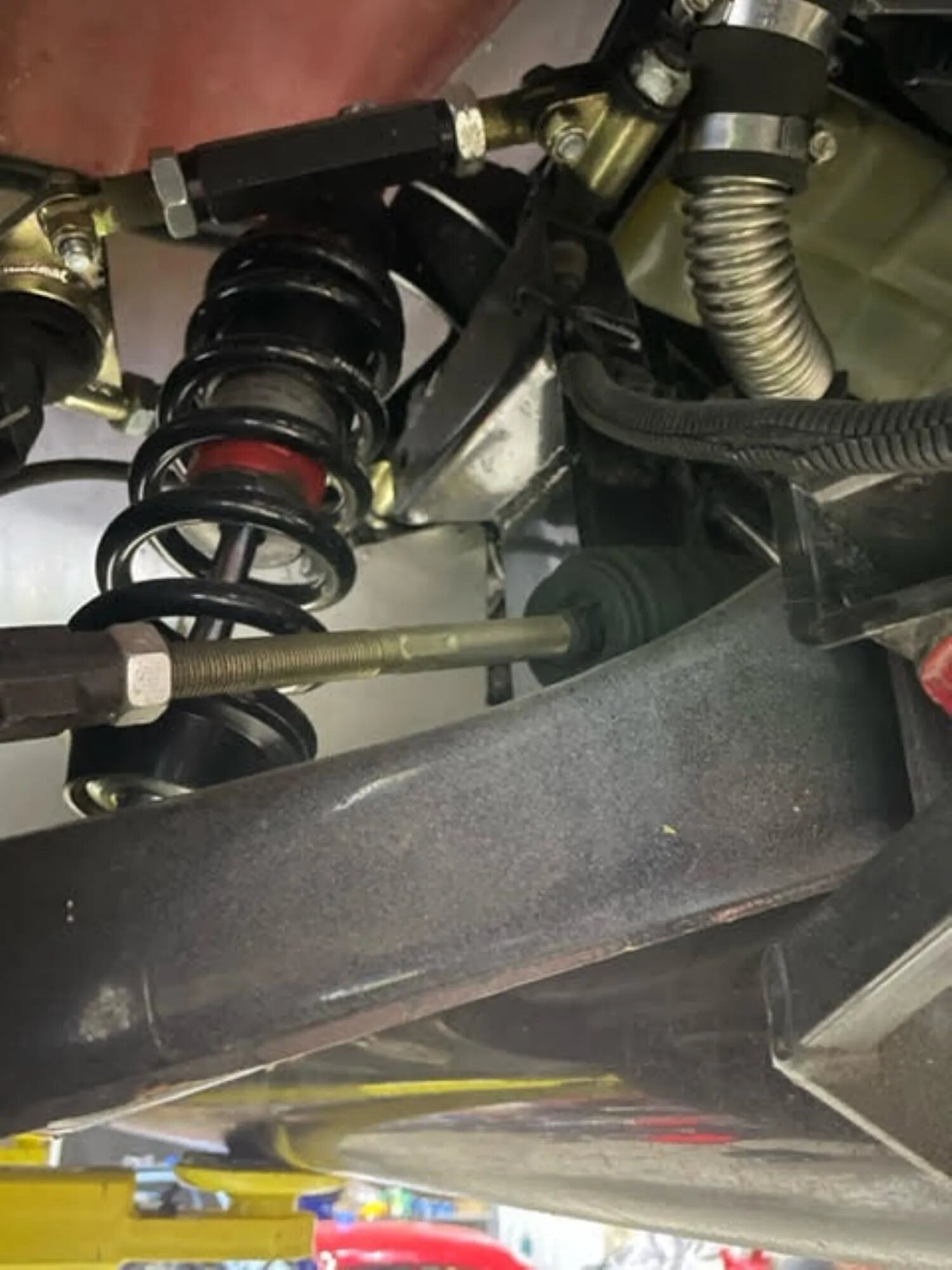 Braking is provided by slotted and cross-drilled rotors at each corner with Cobra-branded calipers up front.