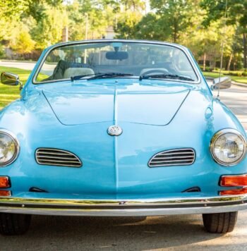 Equipment includes a center console with cupholders, lap belts, manual crank windows, and a Retrosound stereo.