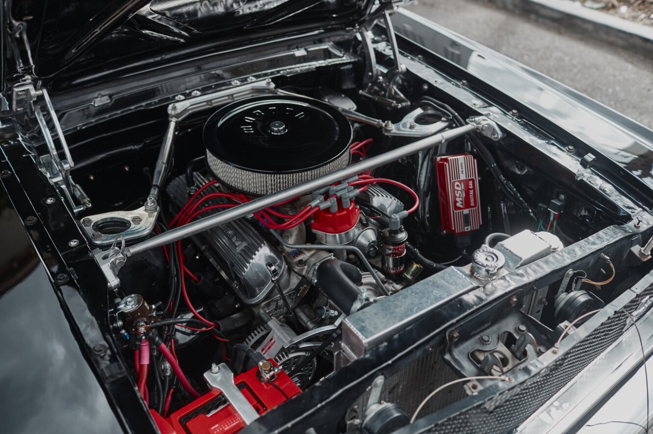 Refinished in black over black, the car is powered by a 331ci stroker V8 paired with a four-speed manual transmission.