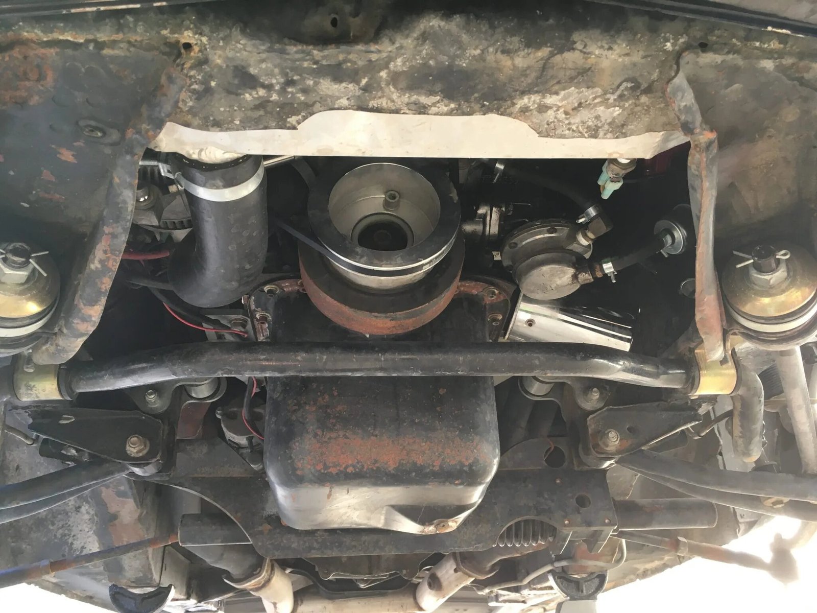 The heater has been removed, and features include a Kenwood stereo, Focal 6.5″ front speakers, Kenwood 6×9″ rear speakers, a JL Audio amplifier, a Rockford Fosgate 10″ subwoofer, and a Viper alarm system with electric locks.