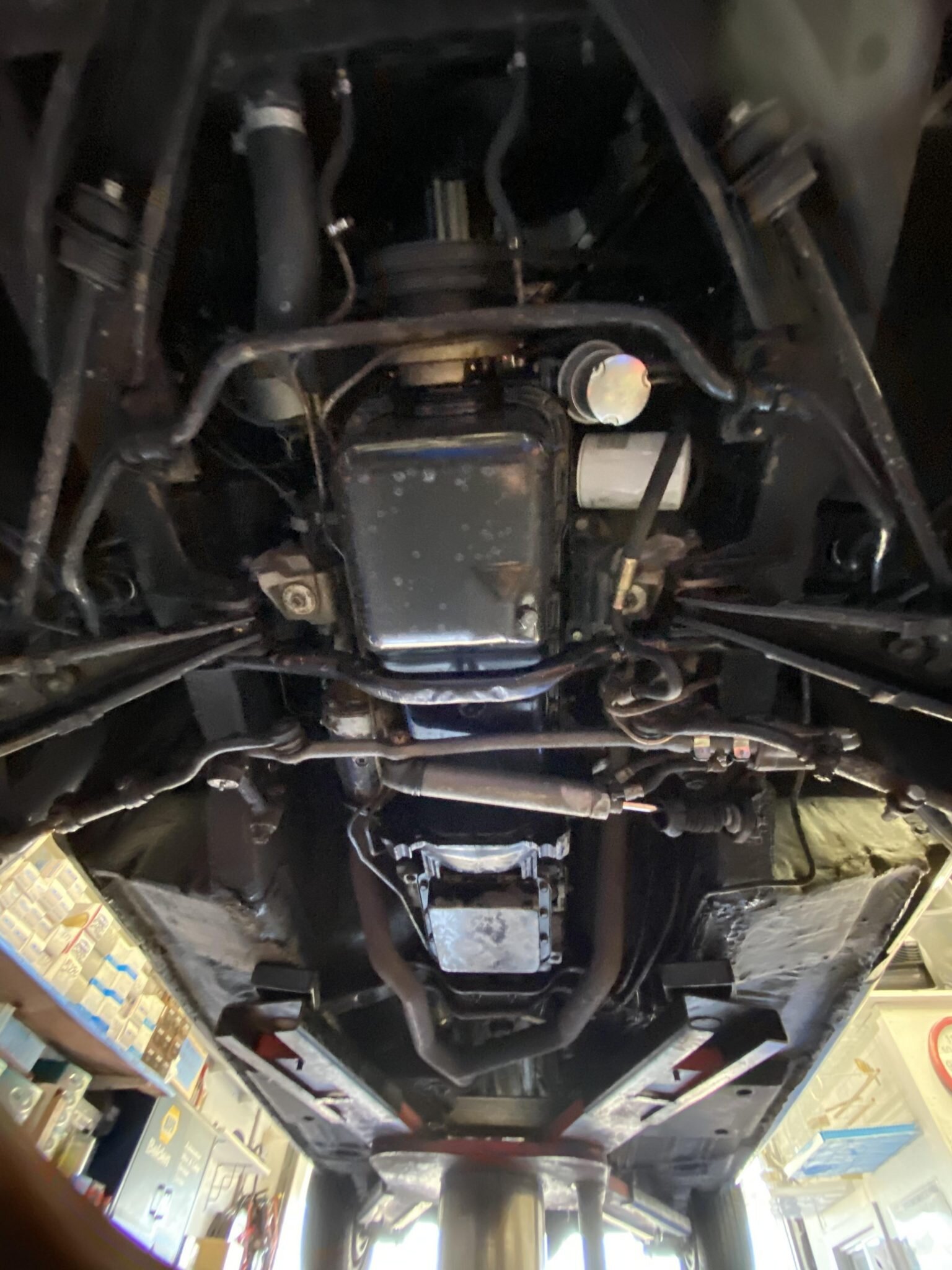 A replacement oil pan was installed and an oil change was performed in preparation for the sale.