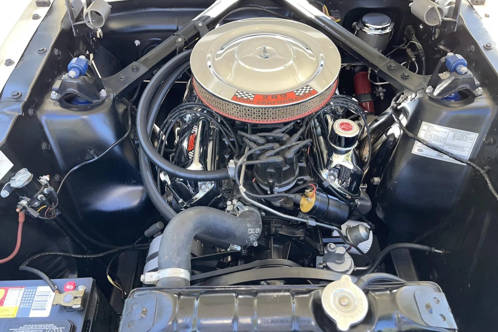 The 289ci V8 was rebuilt and bored .030” over by Alec’s Automotive Machine Shop in 2017. Components were cleaned and magna-fluxed, the rotating assembly was balanced, the surfaces were machine-decked, the crankshaft was polished, and additional work included rebuilding the cylinder heads, grinding and polishing the valves, installing a COMP Cams camshaft, and replacing the pistons, rocker arms, lifters, and rod and main bearings. Power is sent to the rear wheels via a four-speed manual transmission and a differential with 3.50:1 gearing.