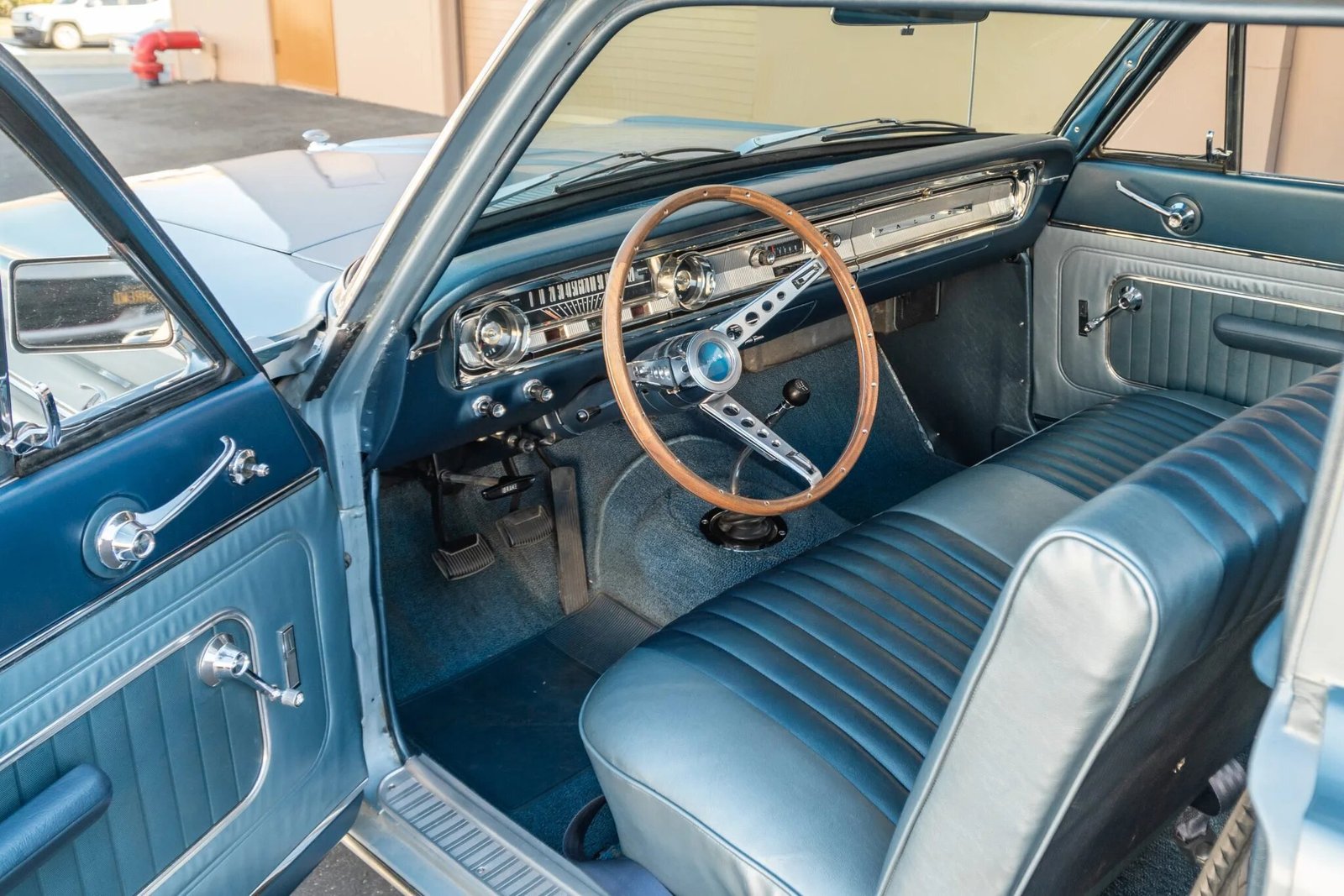 The car is finished in Silver Blue over a matching interior and is powered by a C-code 289ci V8 paired with a four-speed manual transmission.